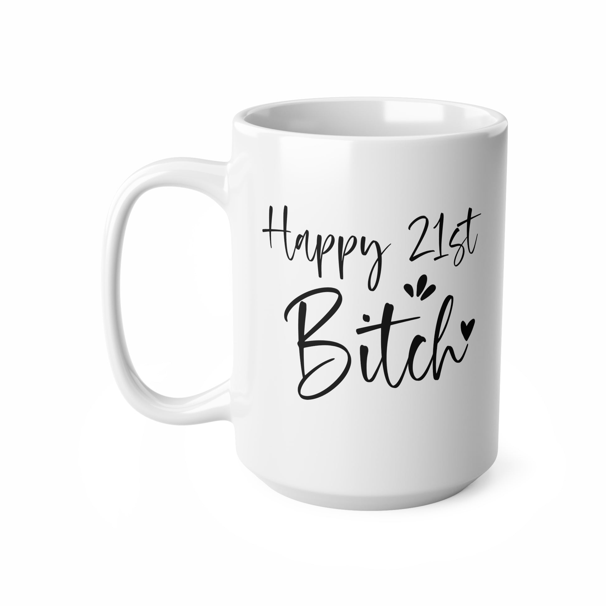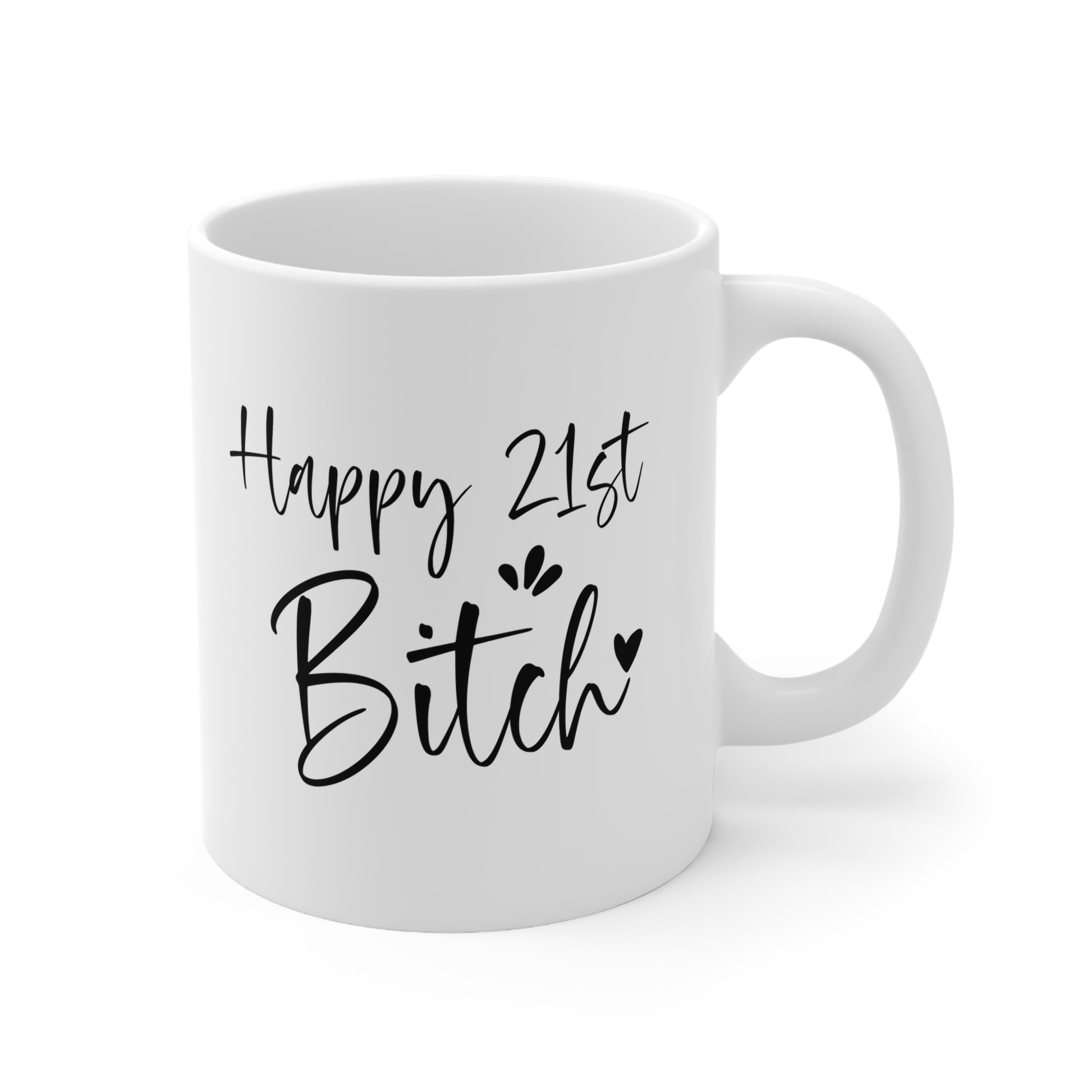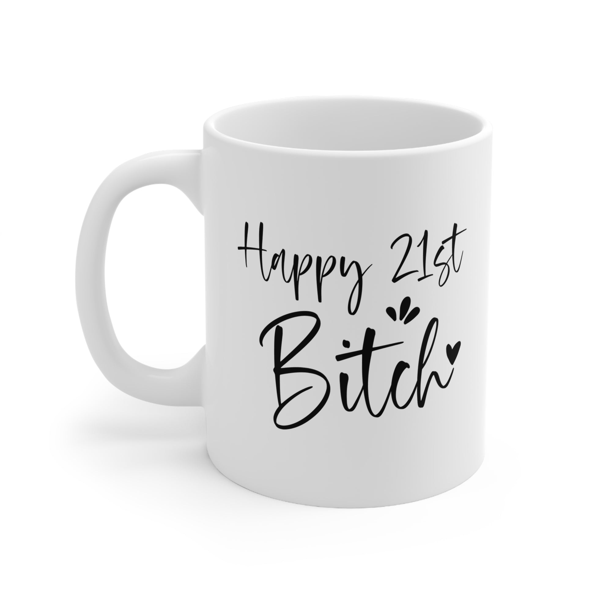 21st Birthday Coffee Cup, Fun Gift for Her, Ceramic Mug for Celebrations, Happy 21st Bitch