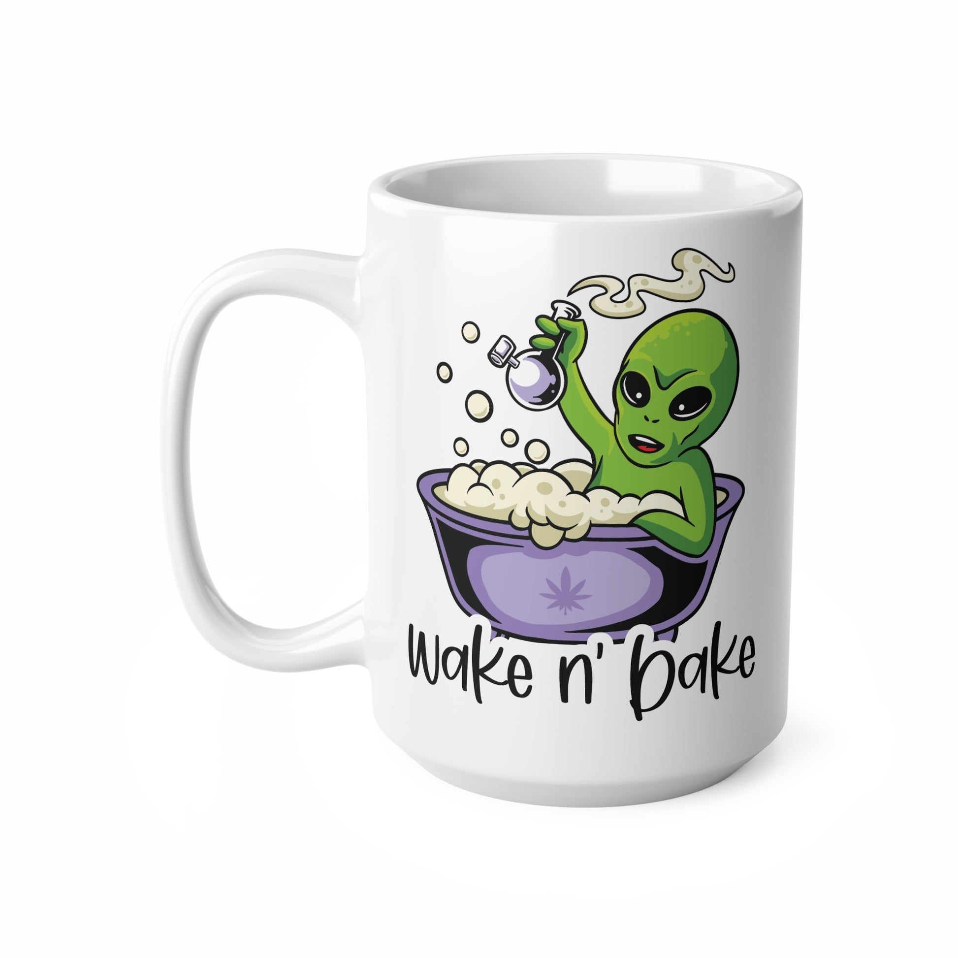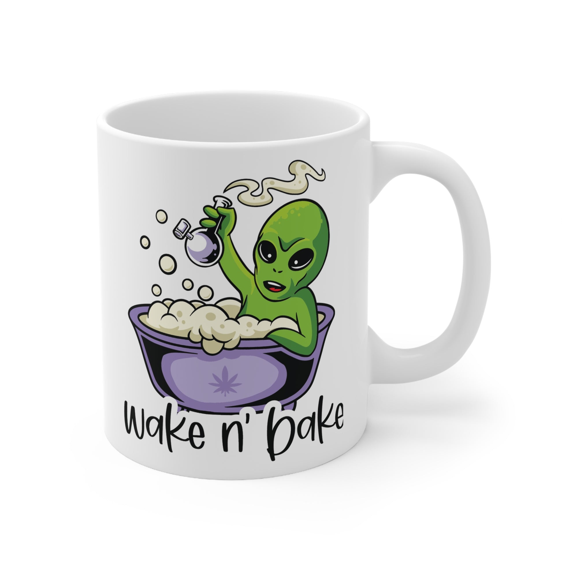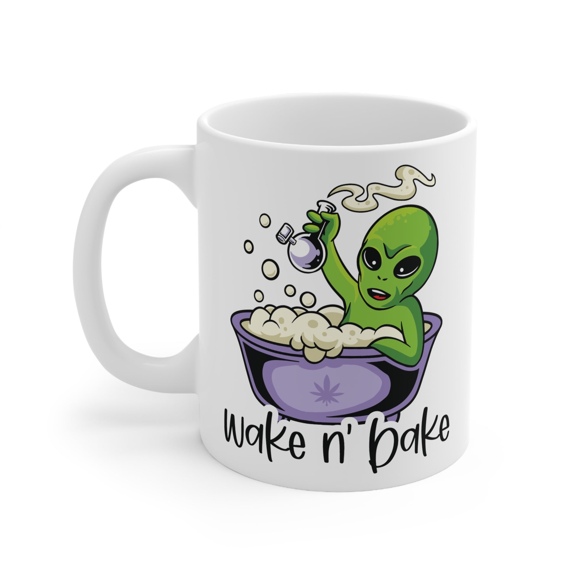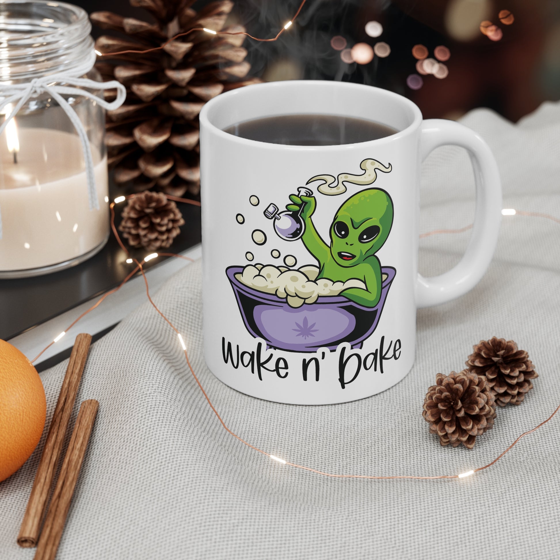 Alien Wake N' Bake Coffee Cups, Funny Ceramic Mugs for Coffee Lovers, Unique Gift for Friends, Stoner Accessories, 11oz & 15oz Sizes