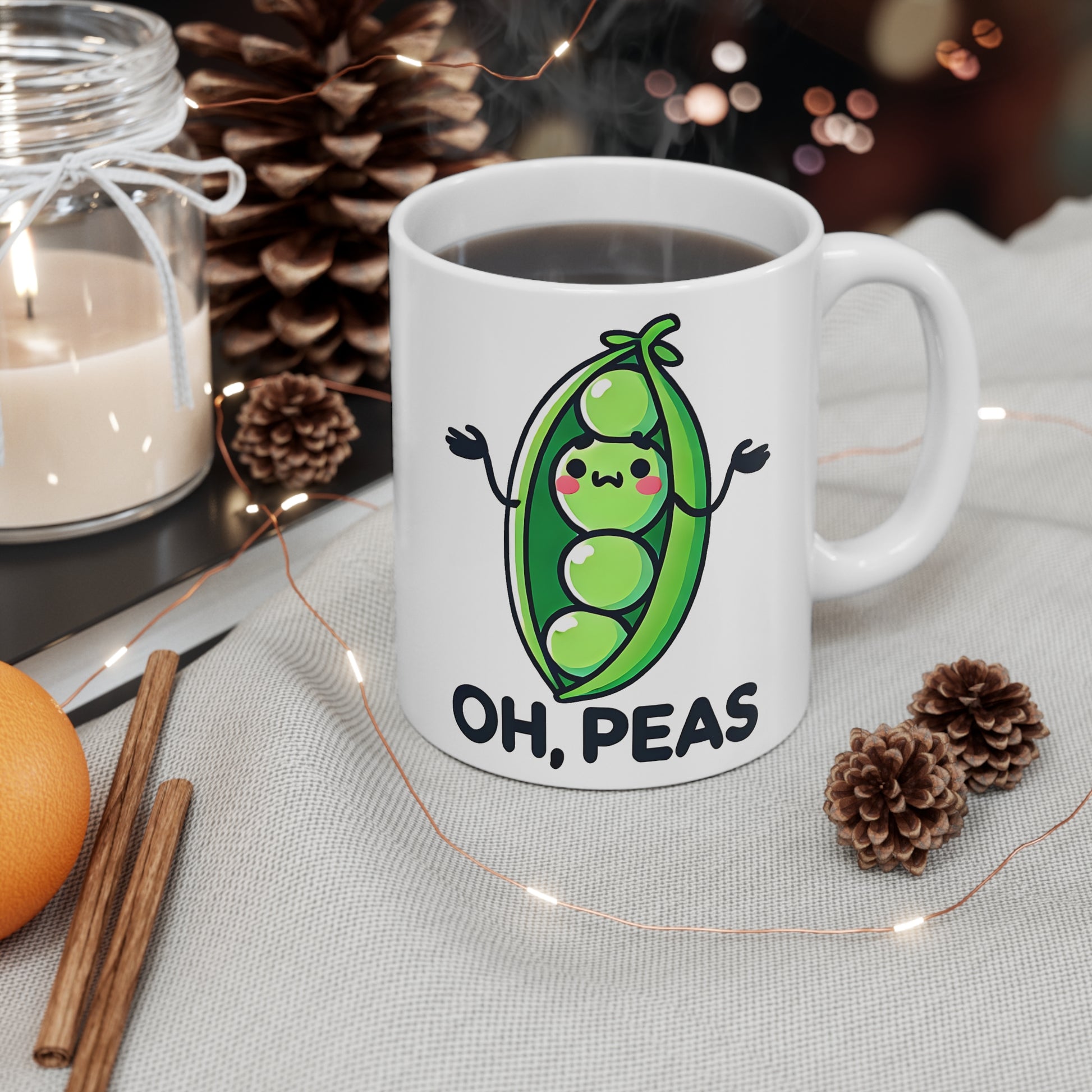 Cute Pea-Themed Coffee Mug, Oh Peas Ceramic Cup, Perfect Gift for Garden Lovers, Funny Kitchen Decor, Cute Coffee Cup for Friends