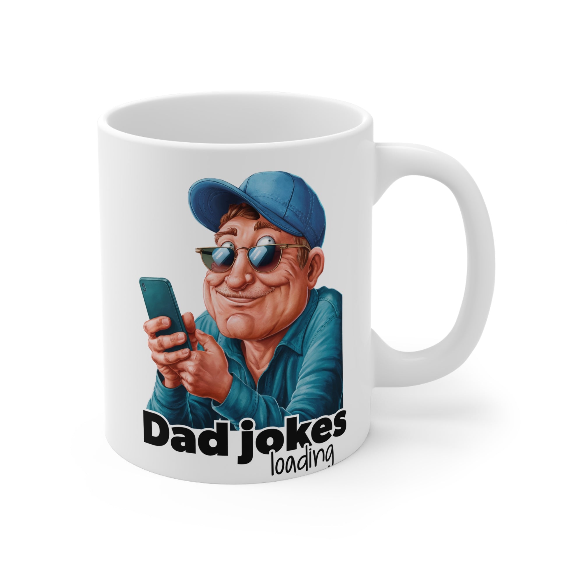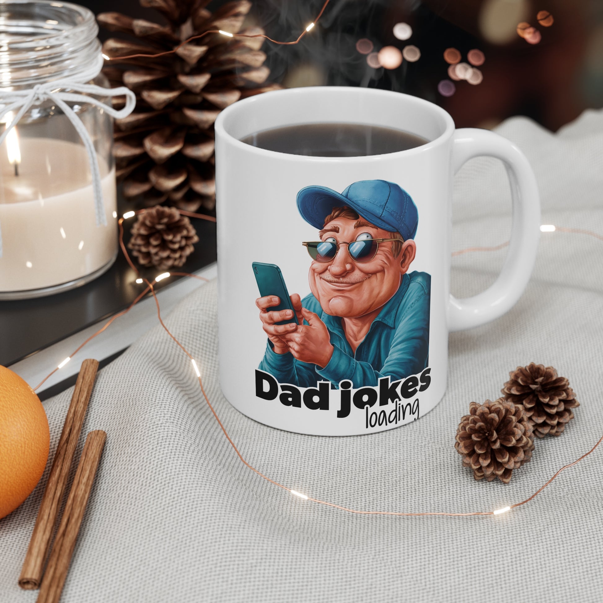 Dad Jokes Loading Ceramic Coffee Cups - Funny Mugs for Dads - 11oz & 15oz