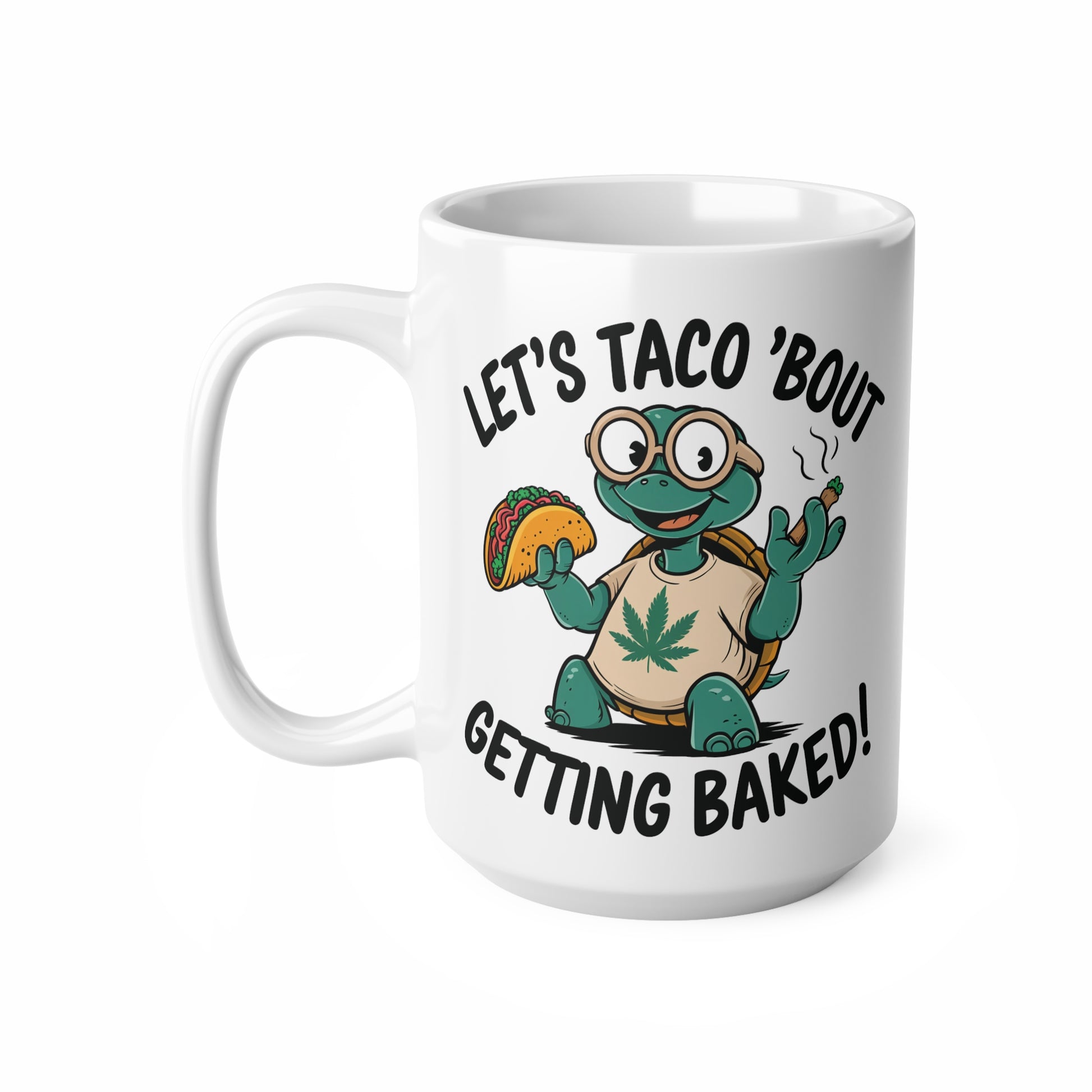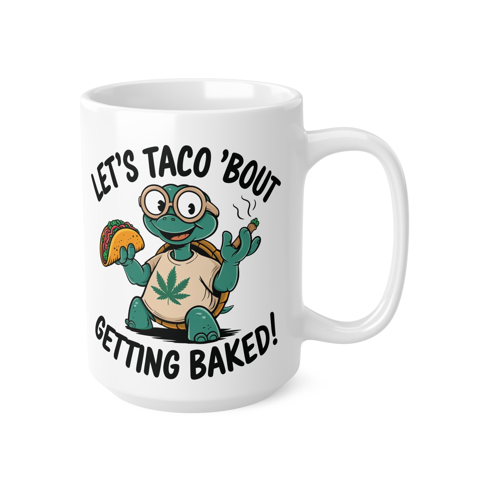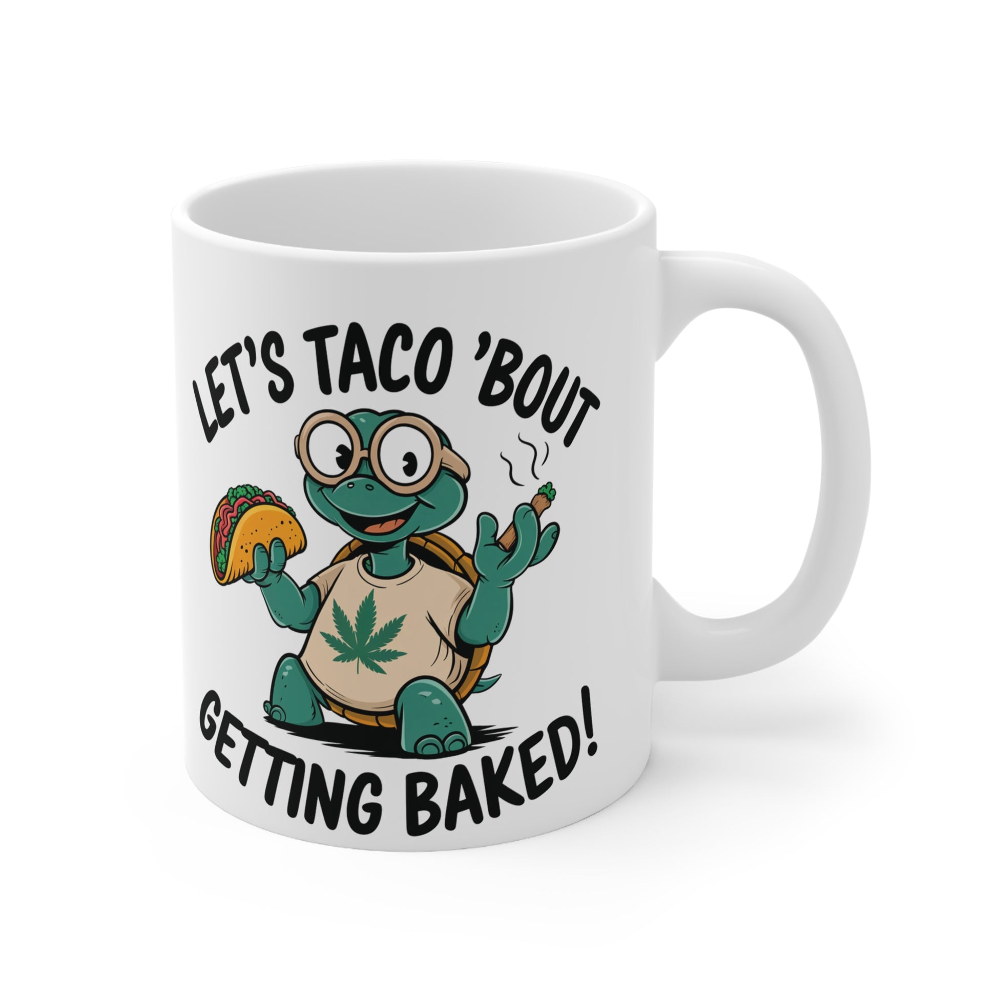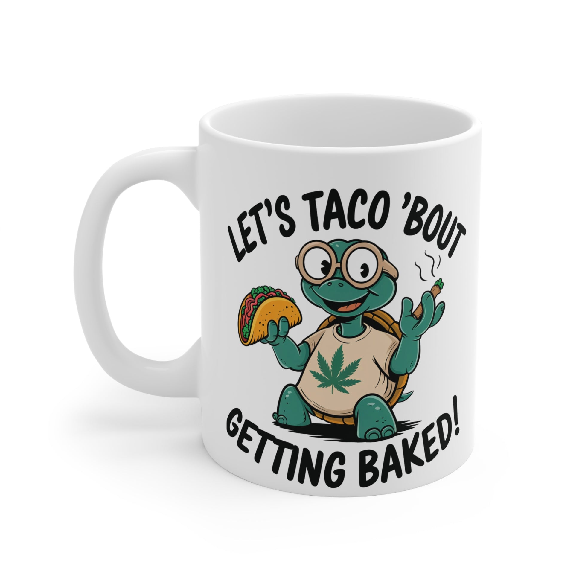 Fun Turtle Ceramic Coffee Mug - 'Let's Taco 'Bout Getting Baked' - 11oz & 15oz