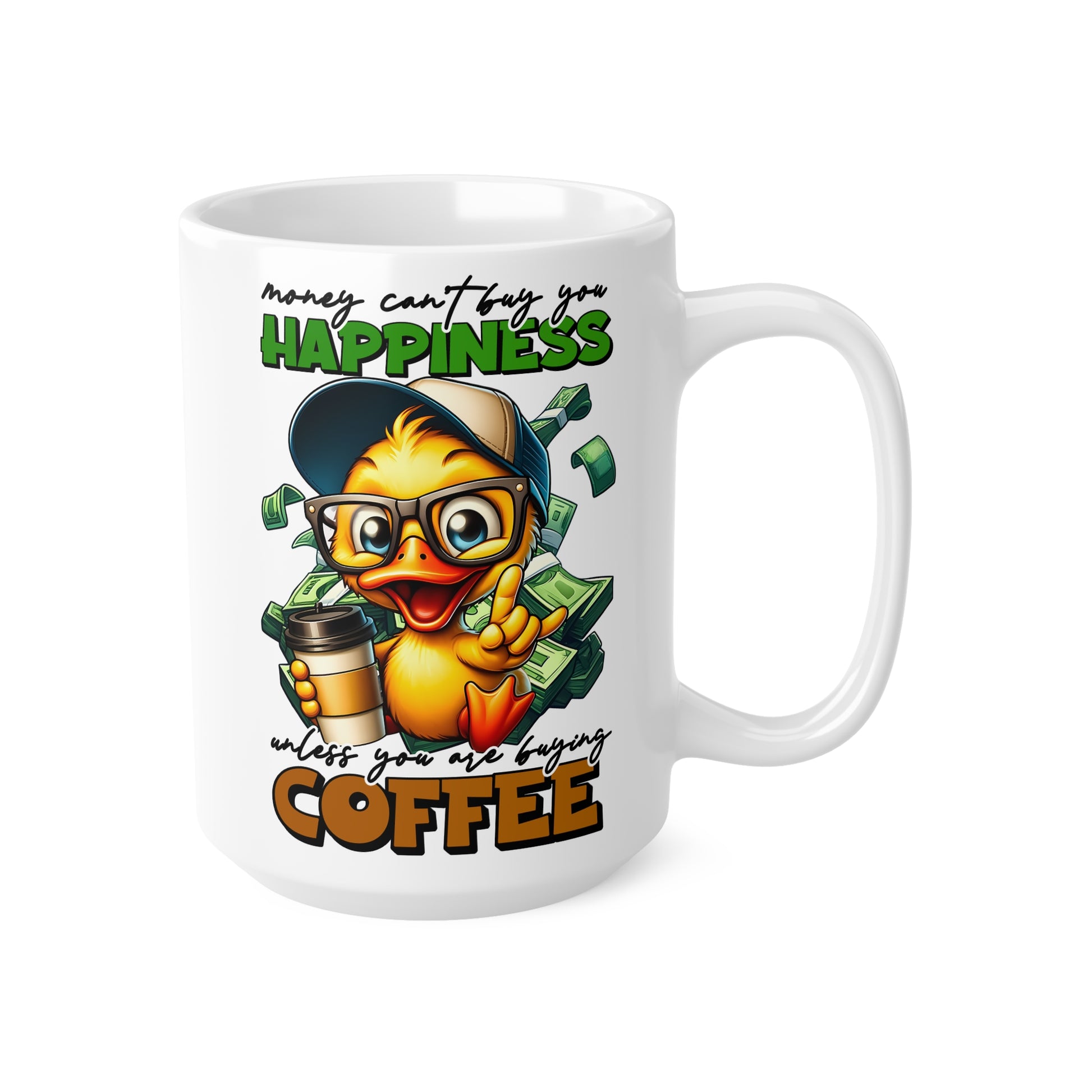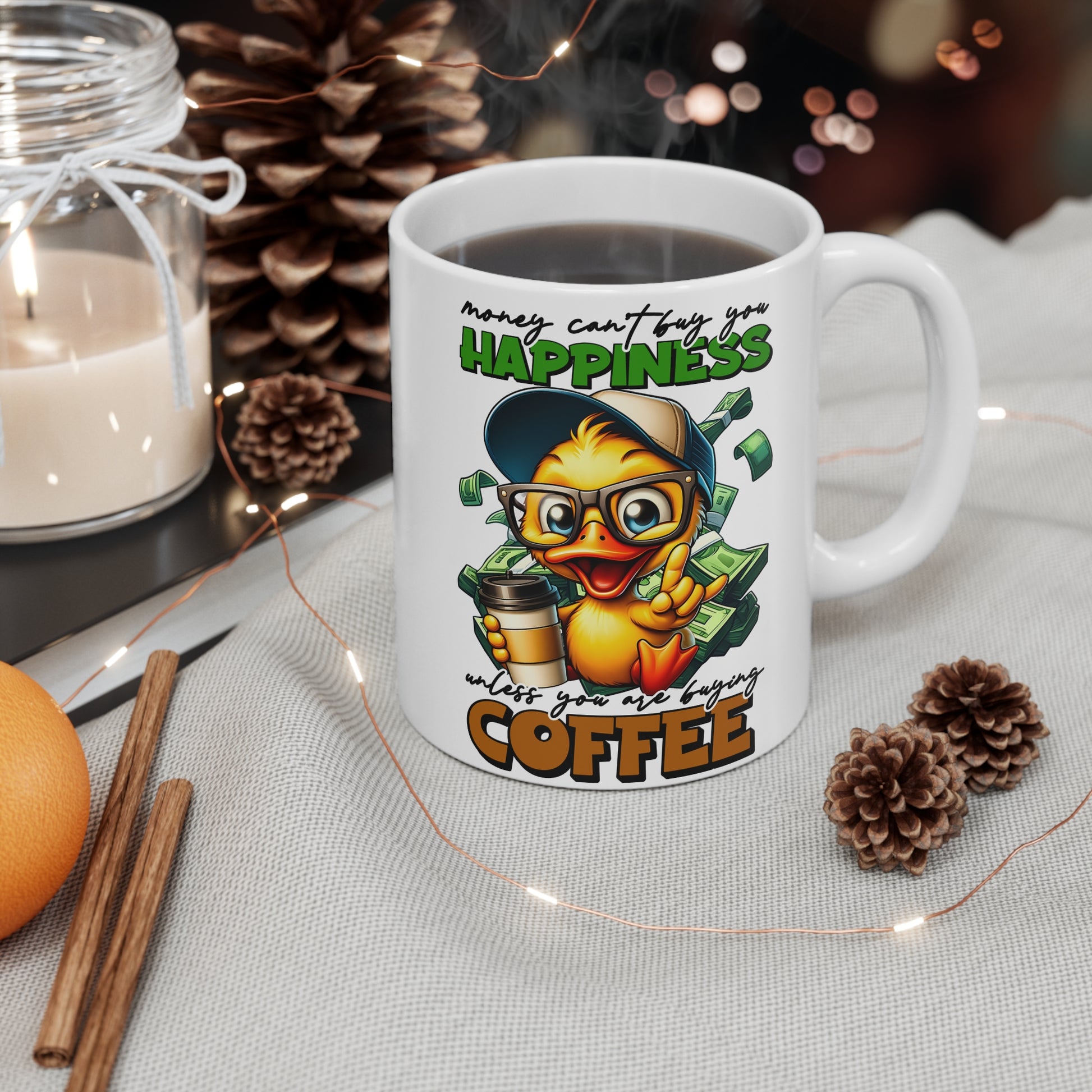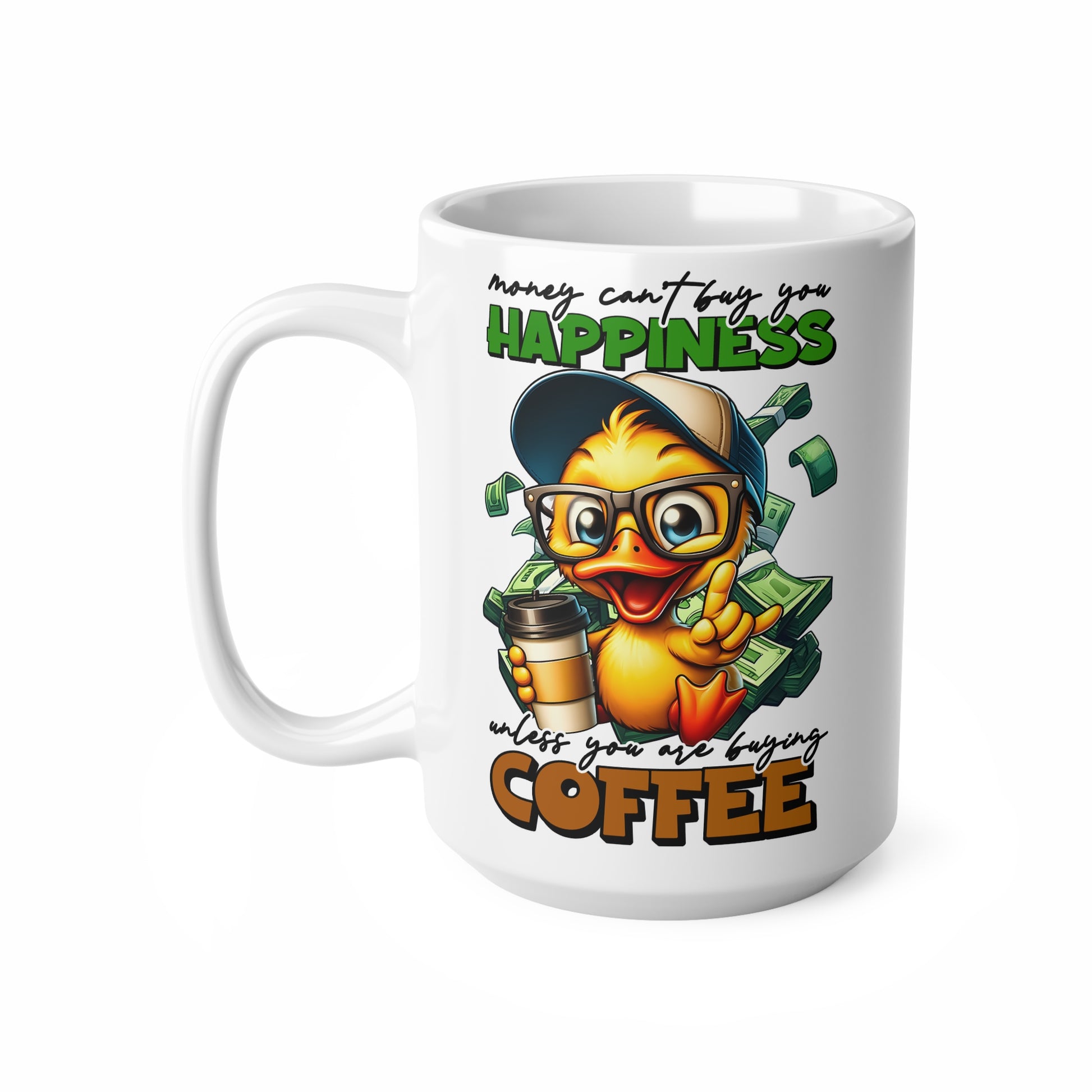 Funny Ceramic Coffee Cups - Happiness and Coffee Design, 11oz & 15oz