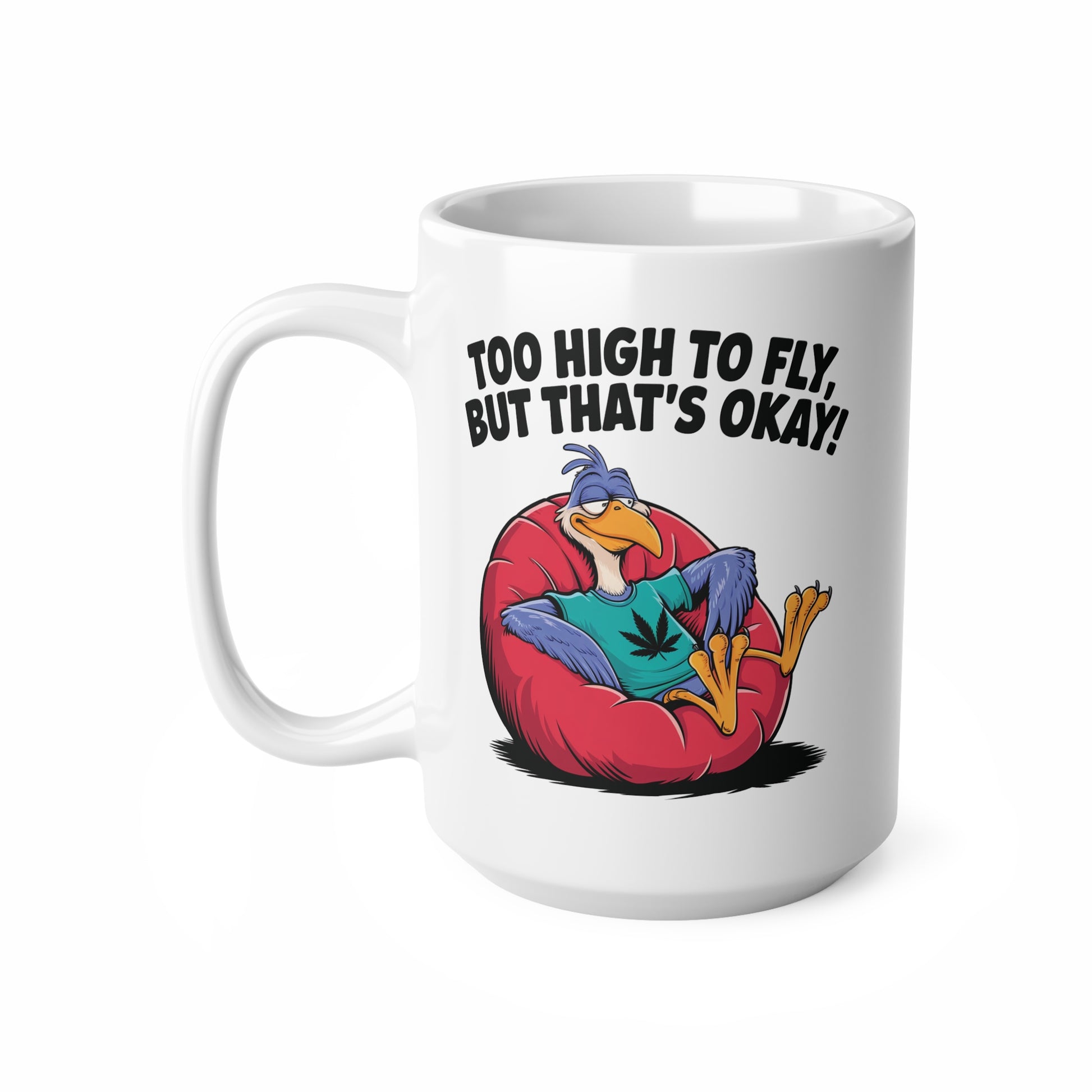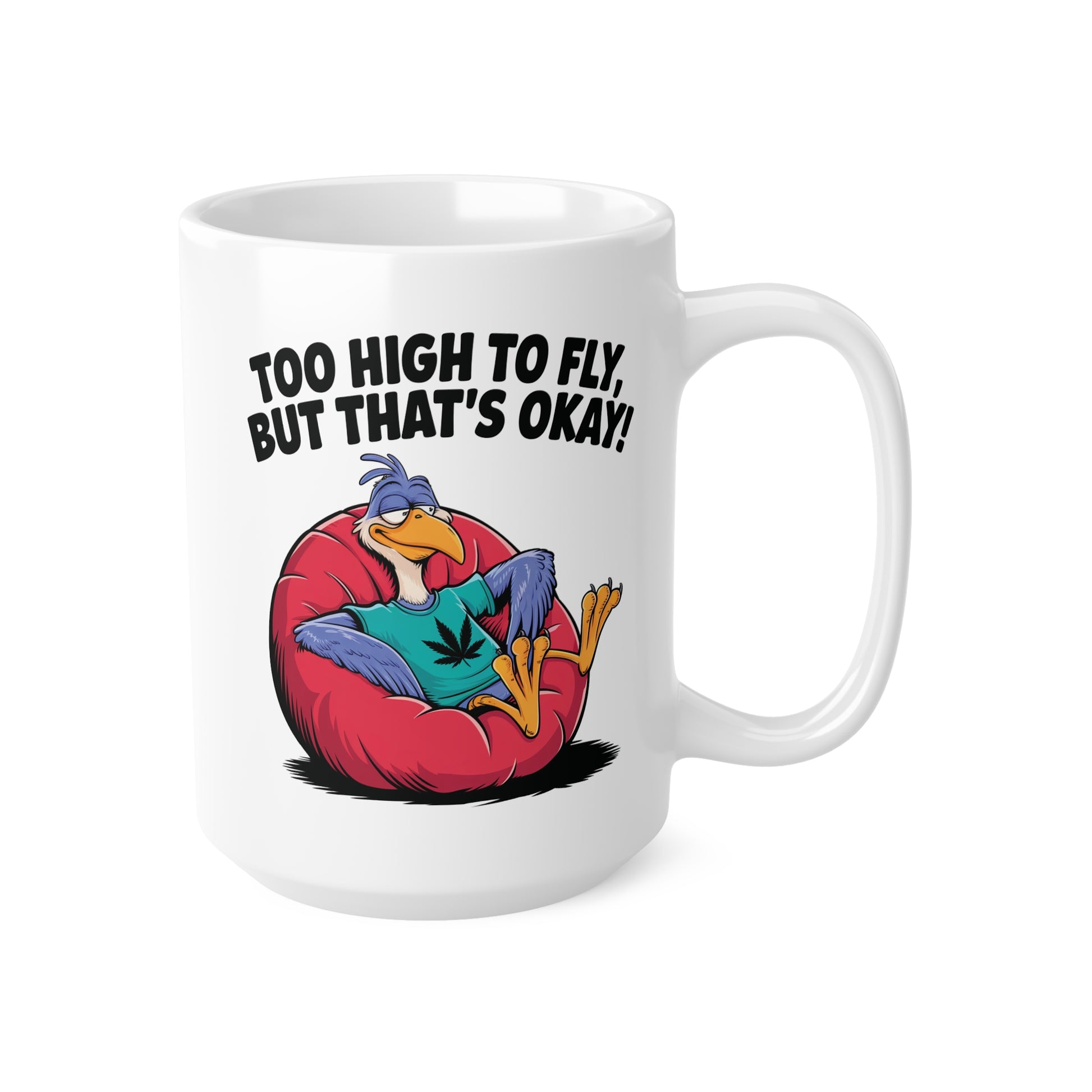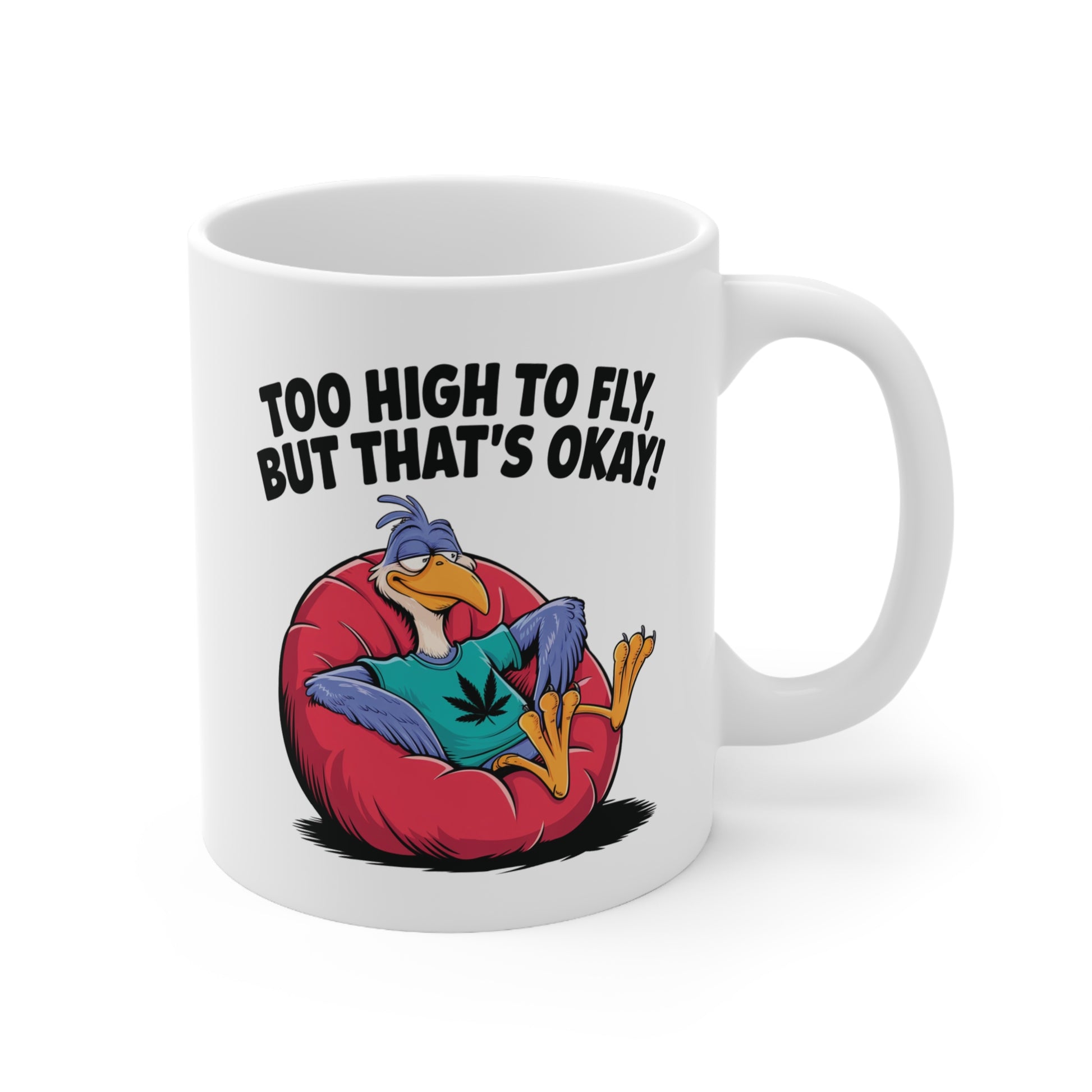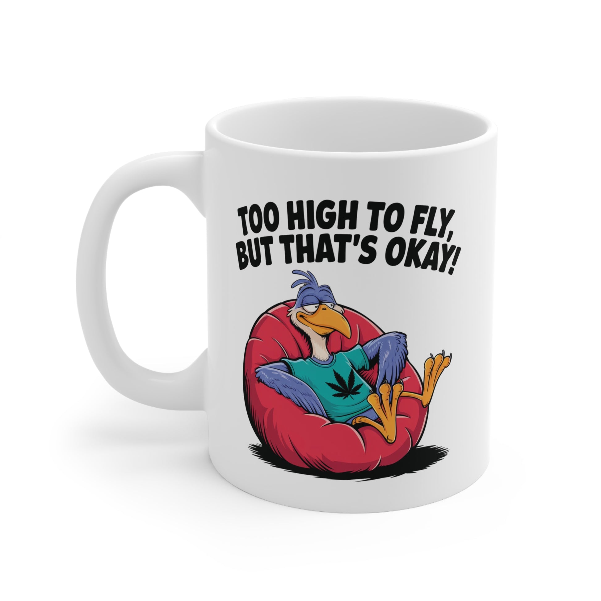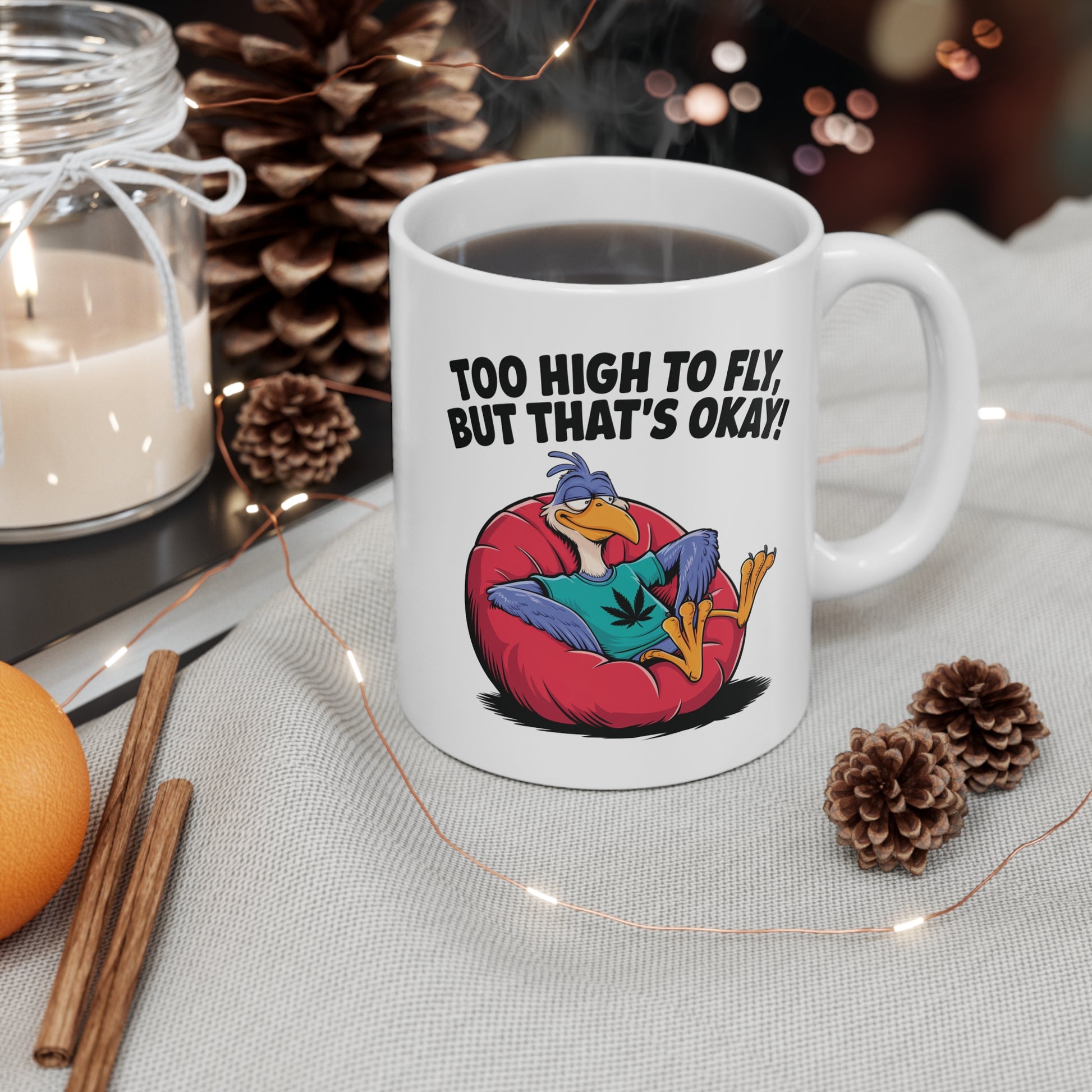 Funny Ceramic Coffee Cups - "Too High to Fly, But That's Okay!" - 11oz & 15oz