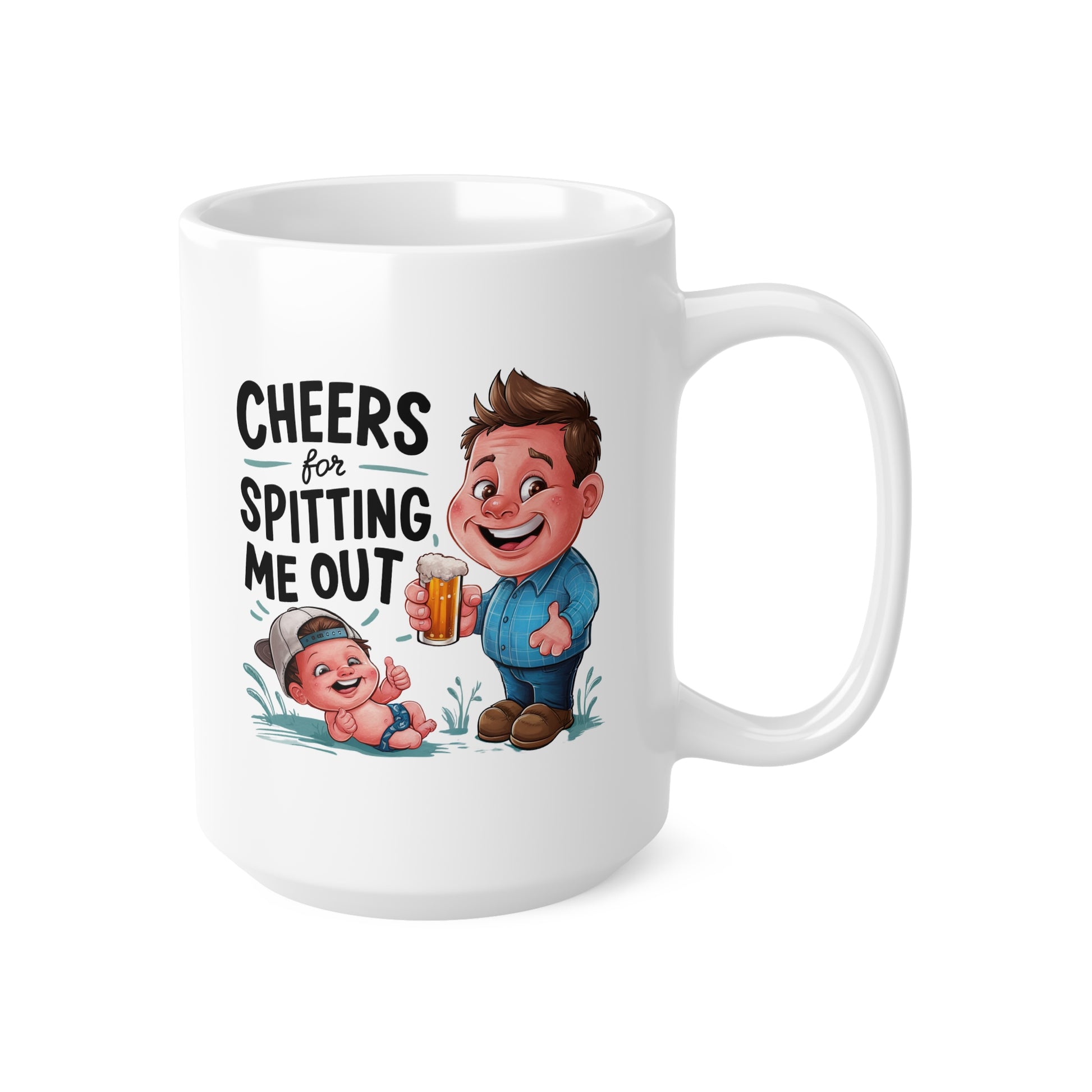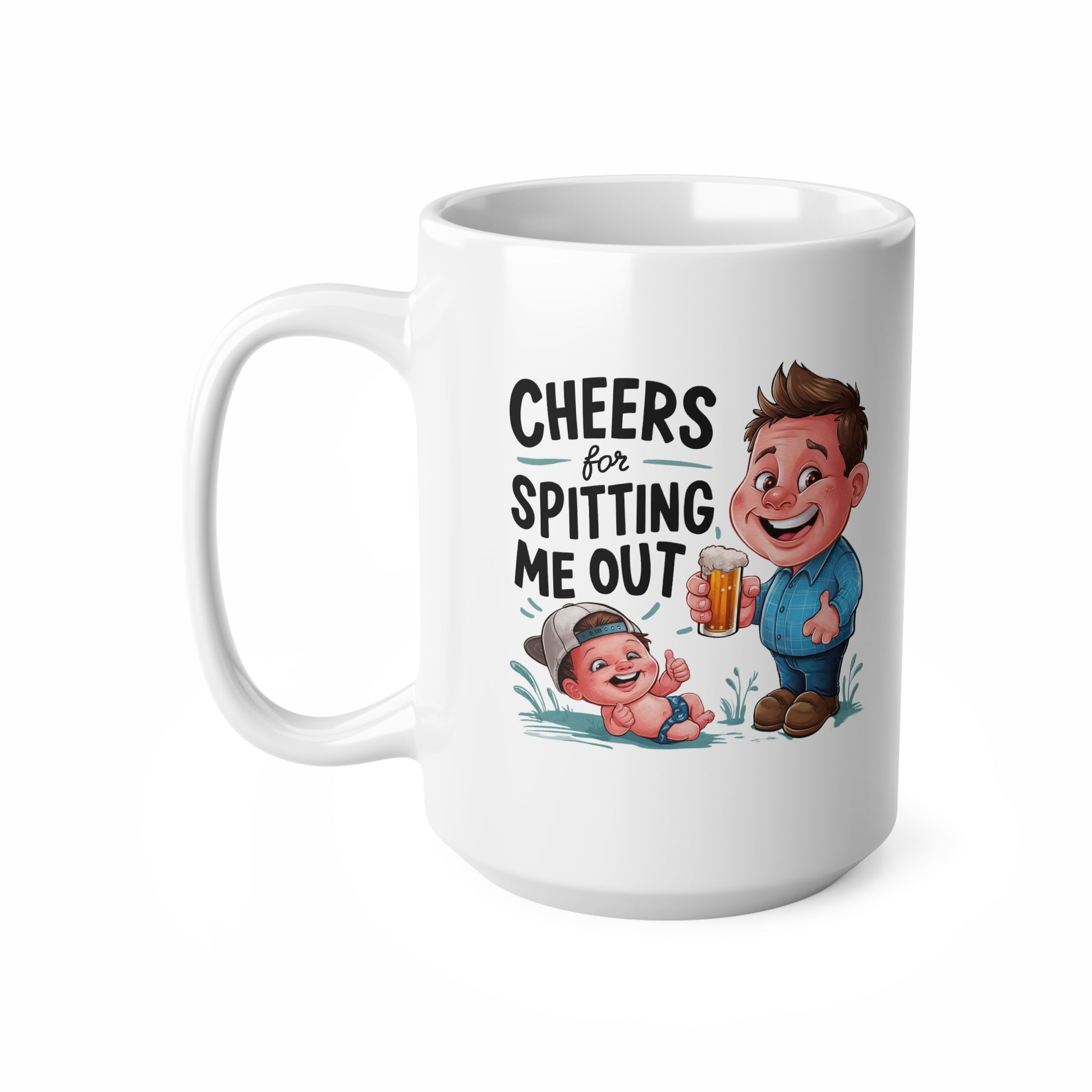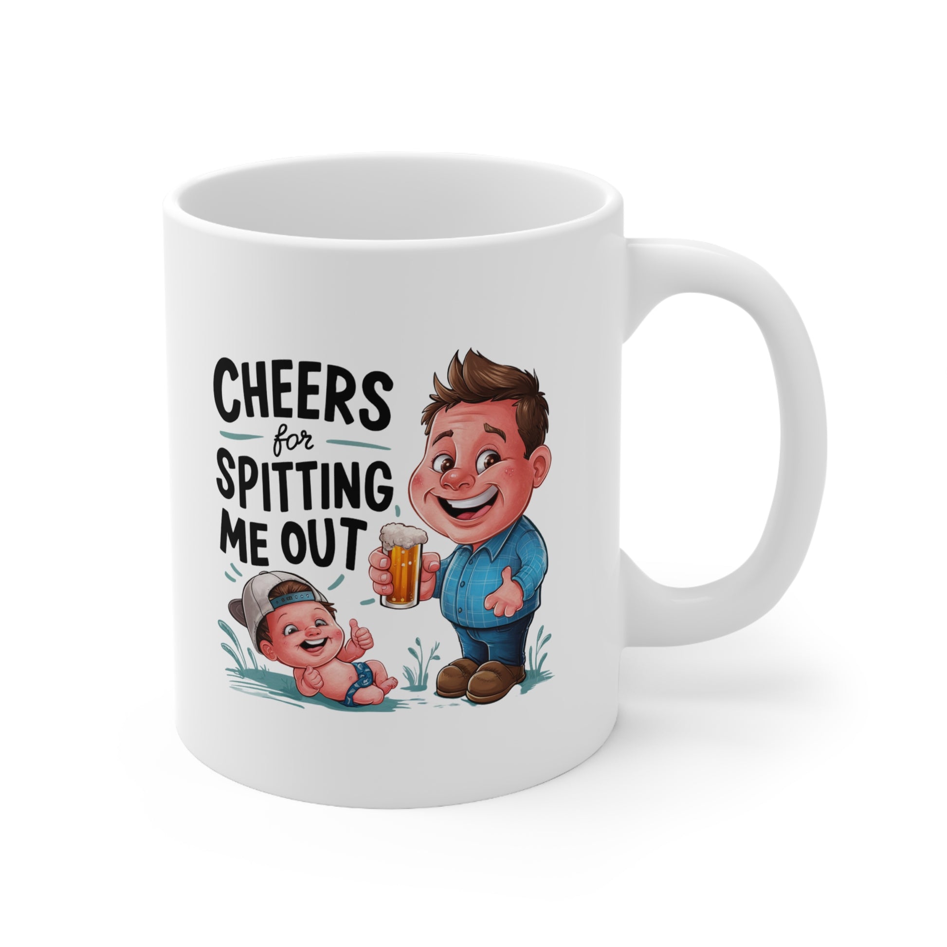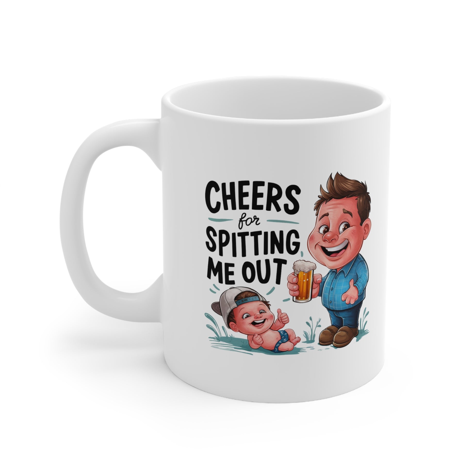 Funny Ceramic Coffee Mug - "Cheers for Spitting Me Out" - Perfect Gift for New Parents