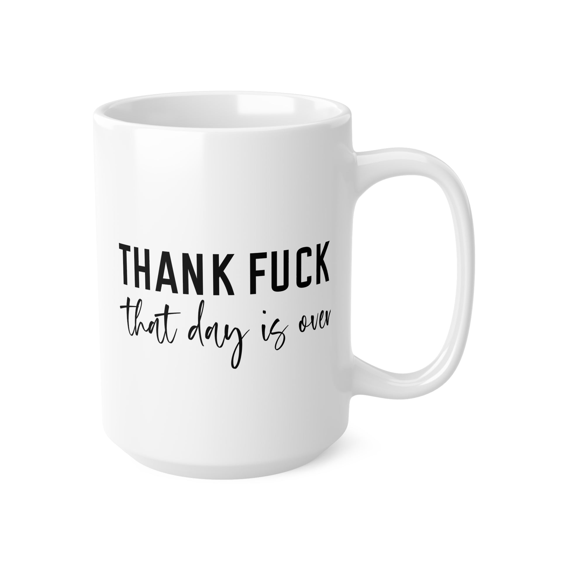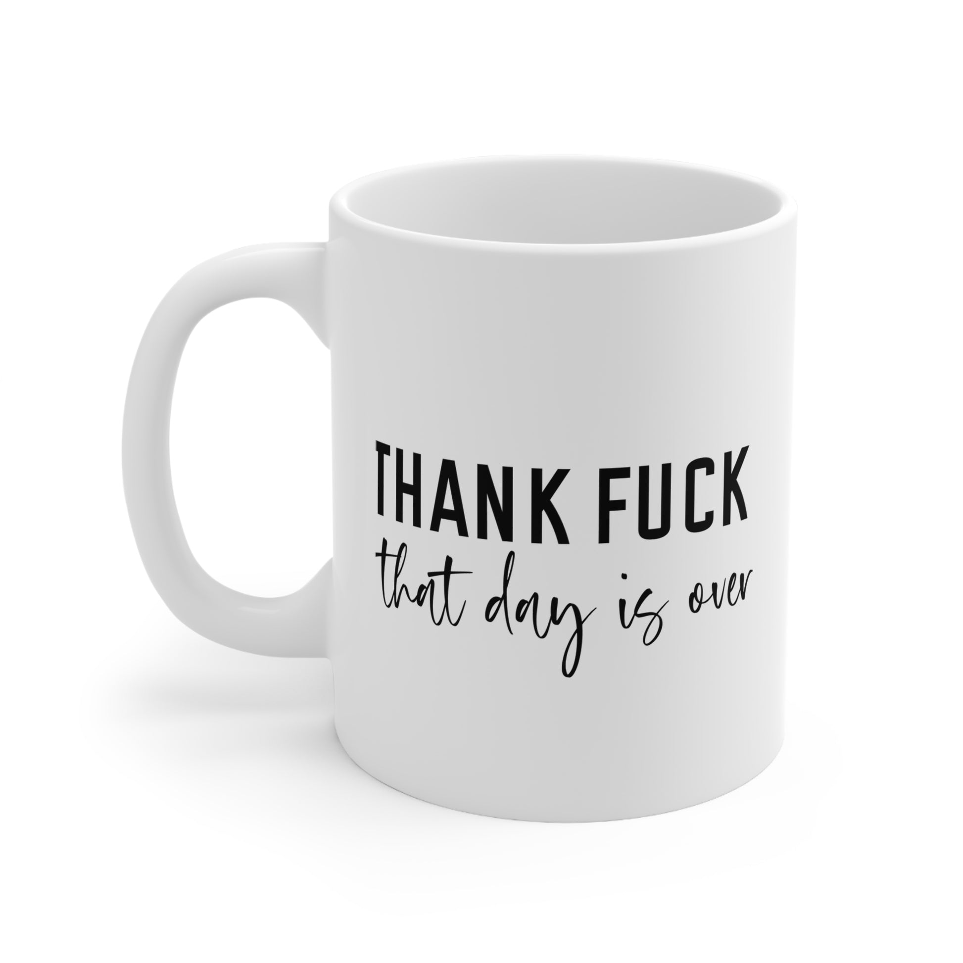 Funny Ceramic Coffee Mug - "Thank F**k That Day Is Over" - Gift for Coffee Lovers, Office Humor, Stress Relief