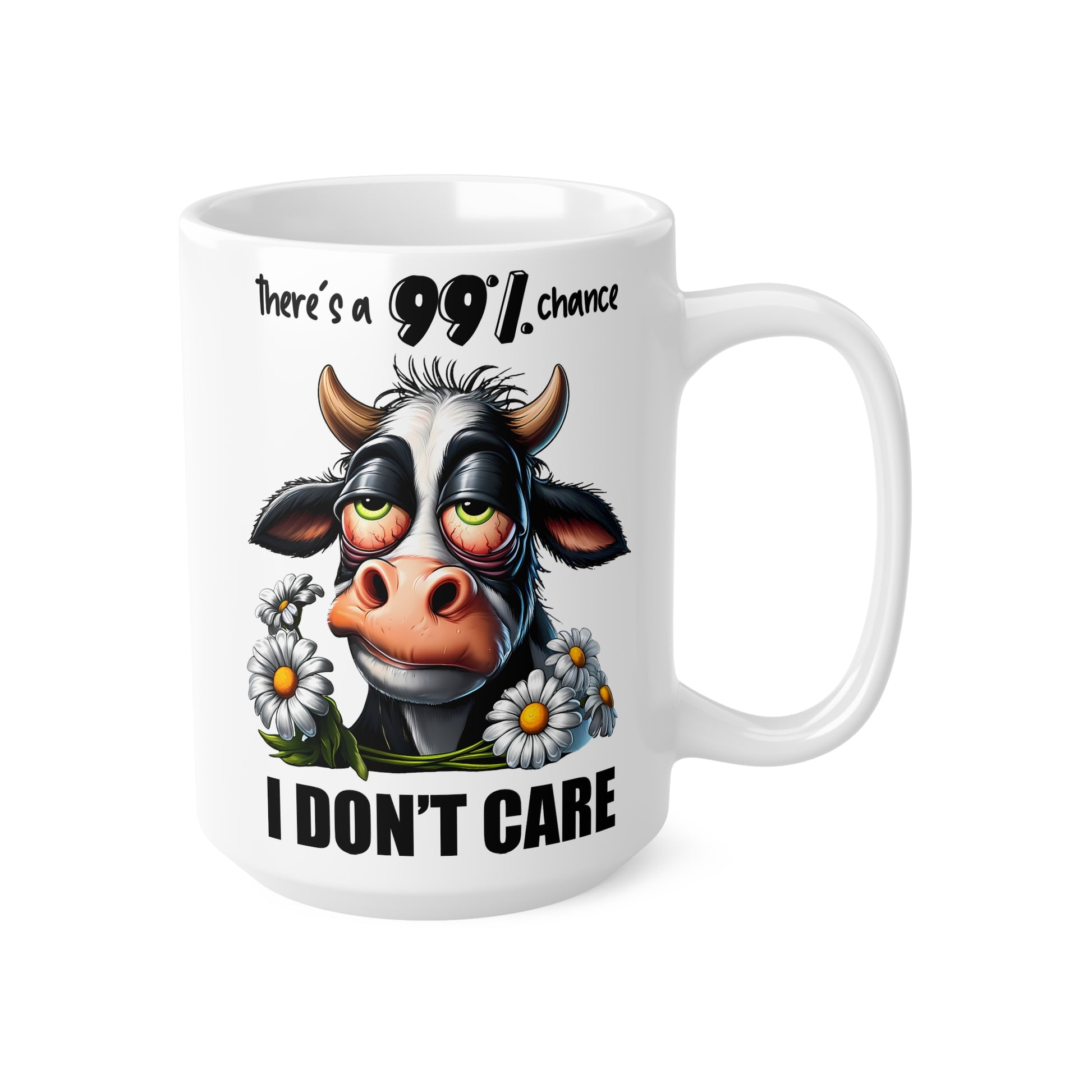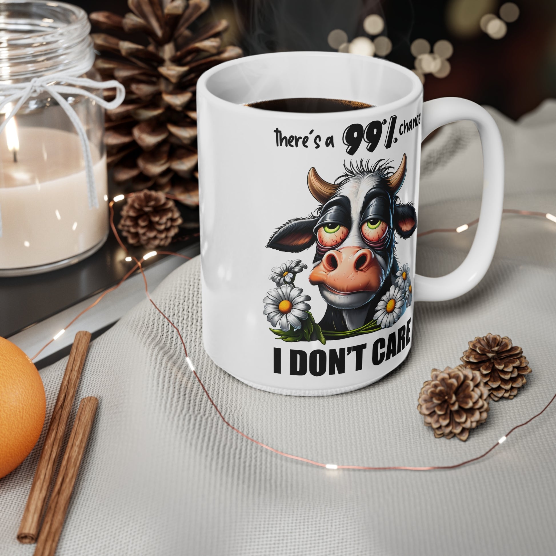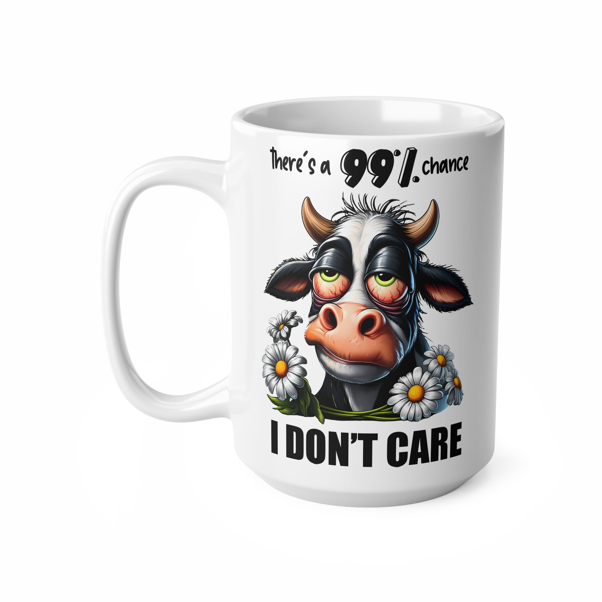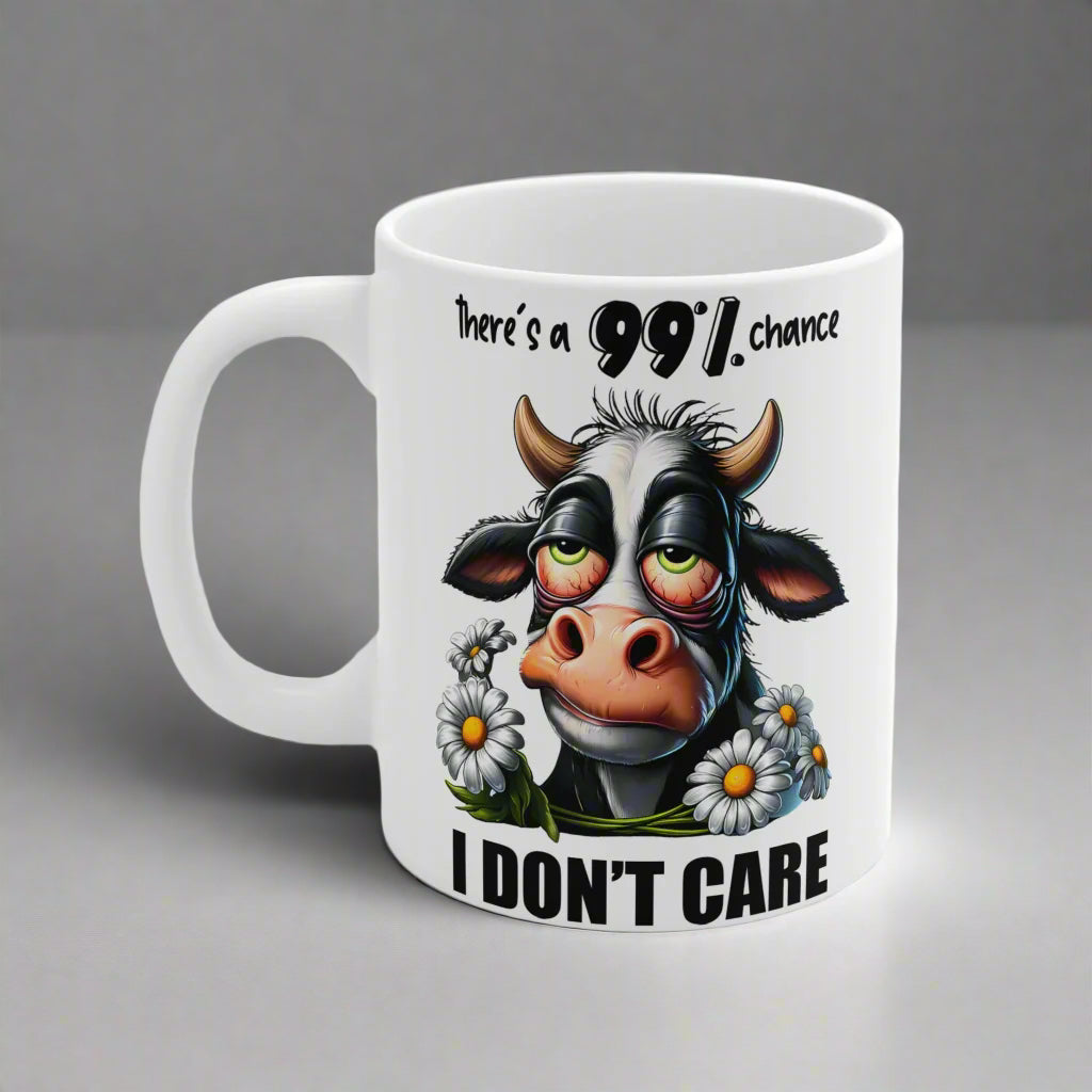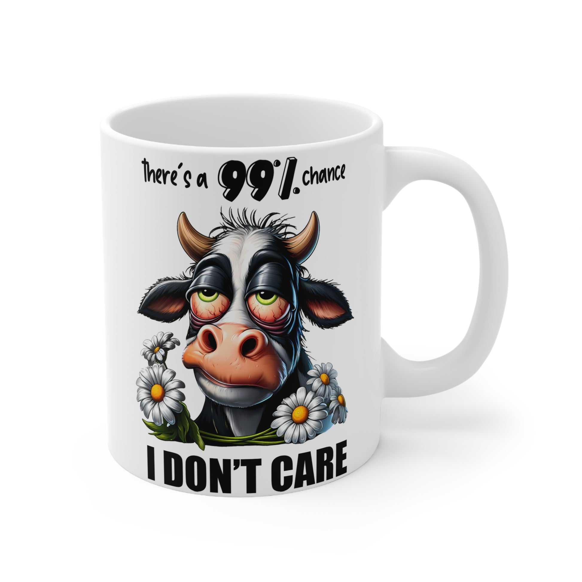 Funny Cow Ceramic Coffee Cup - "There's a 99% Chance I Don't Care" - Humorous Gift for Cow Lovers