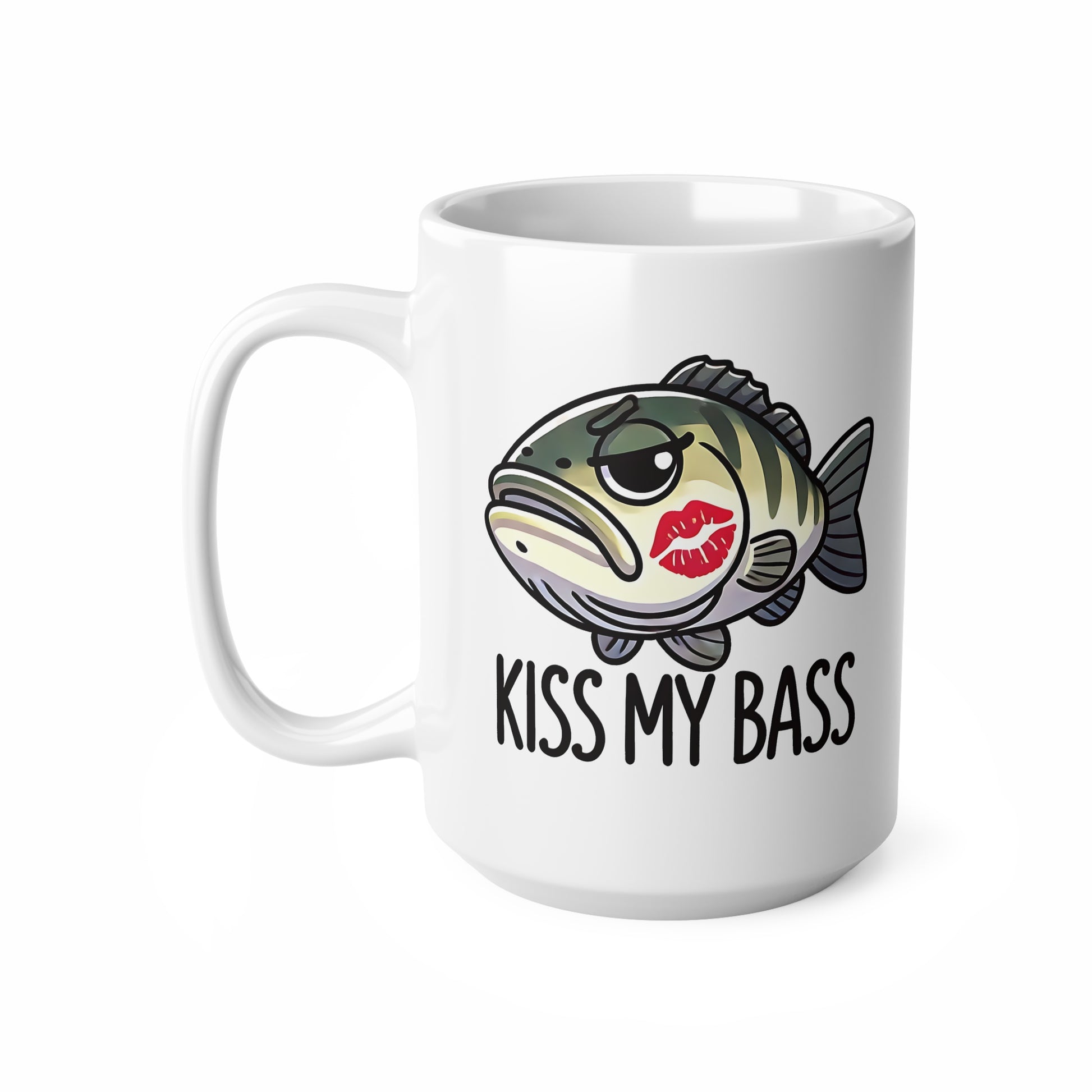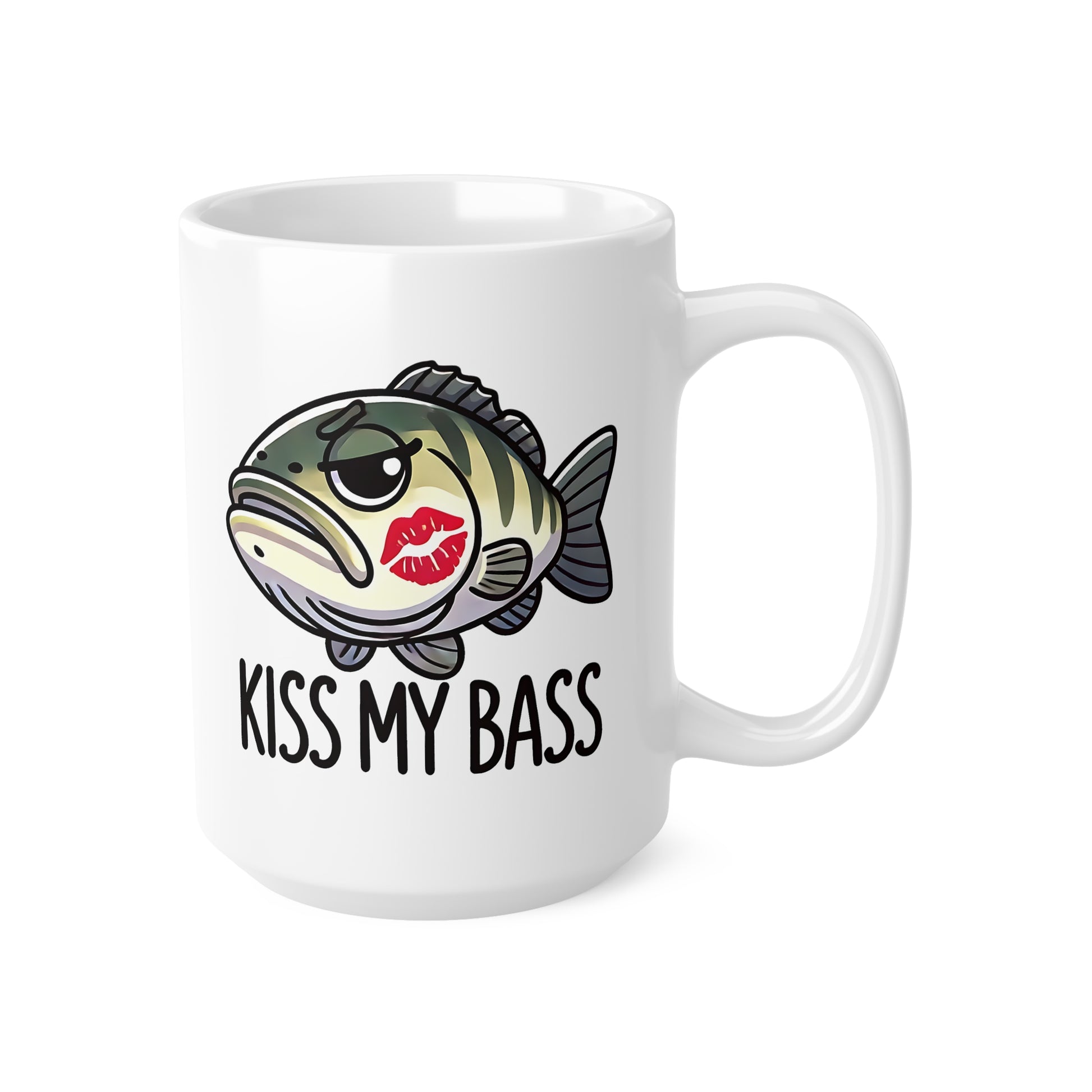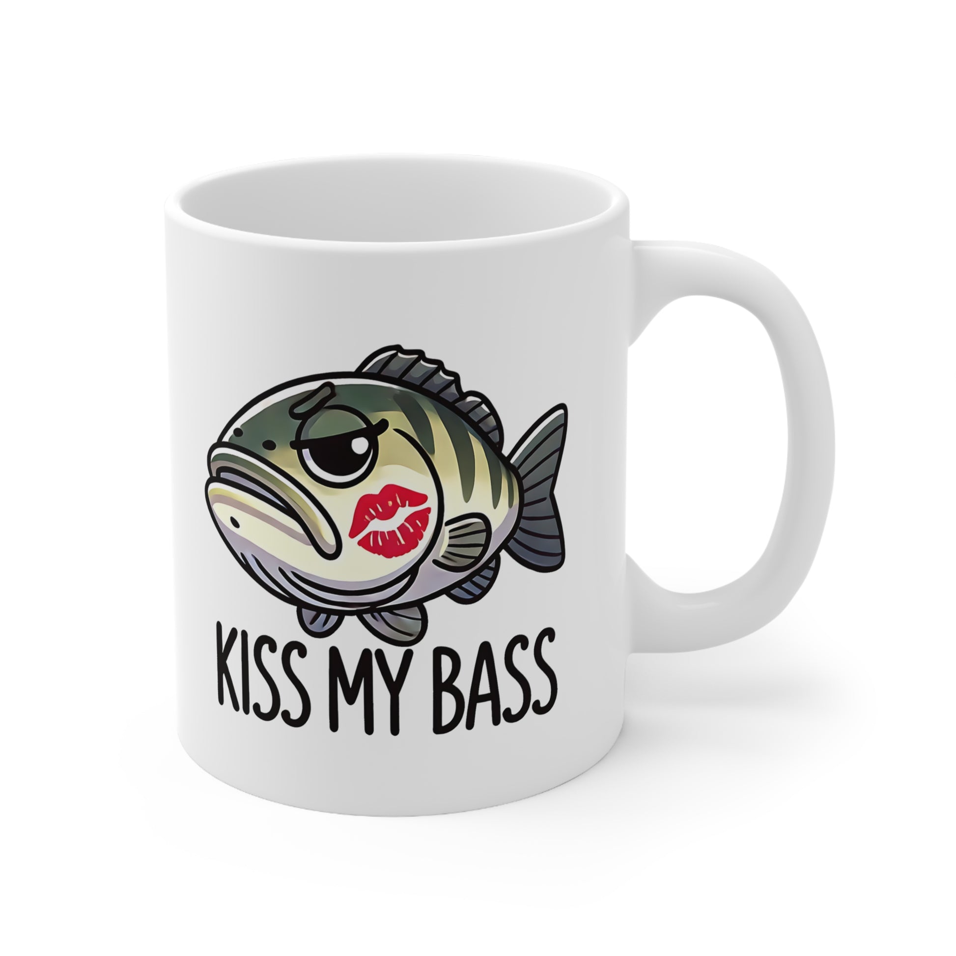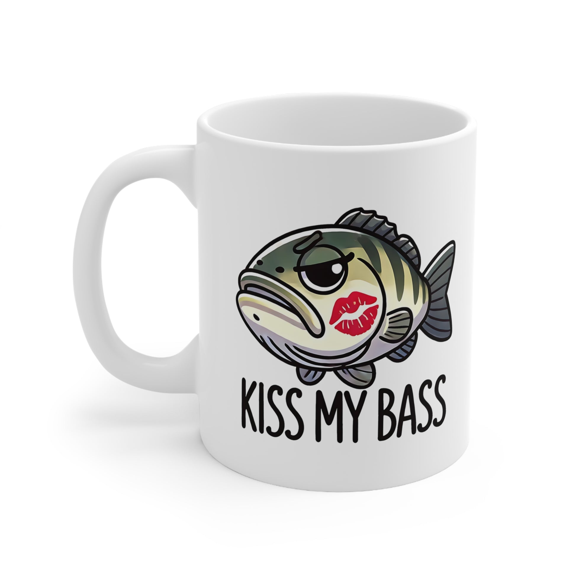 Funny Fish Mug, Kiss My Bass Coffee Cup, Fishing Gifts, Bass Lover Ceramic Mug, Humor Drinkware, 11oz & 15oz