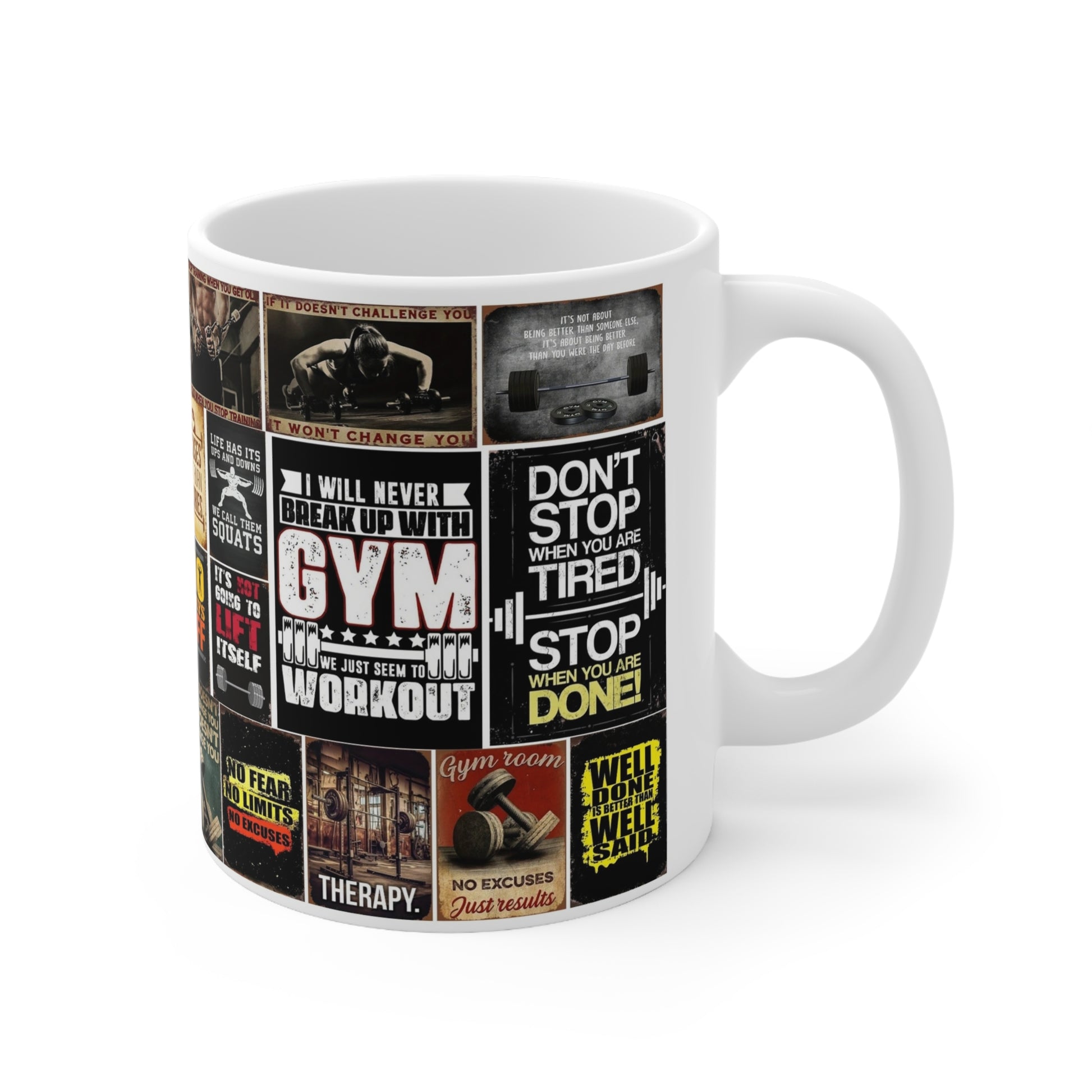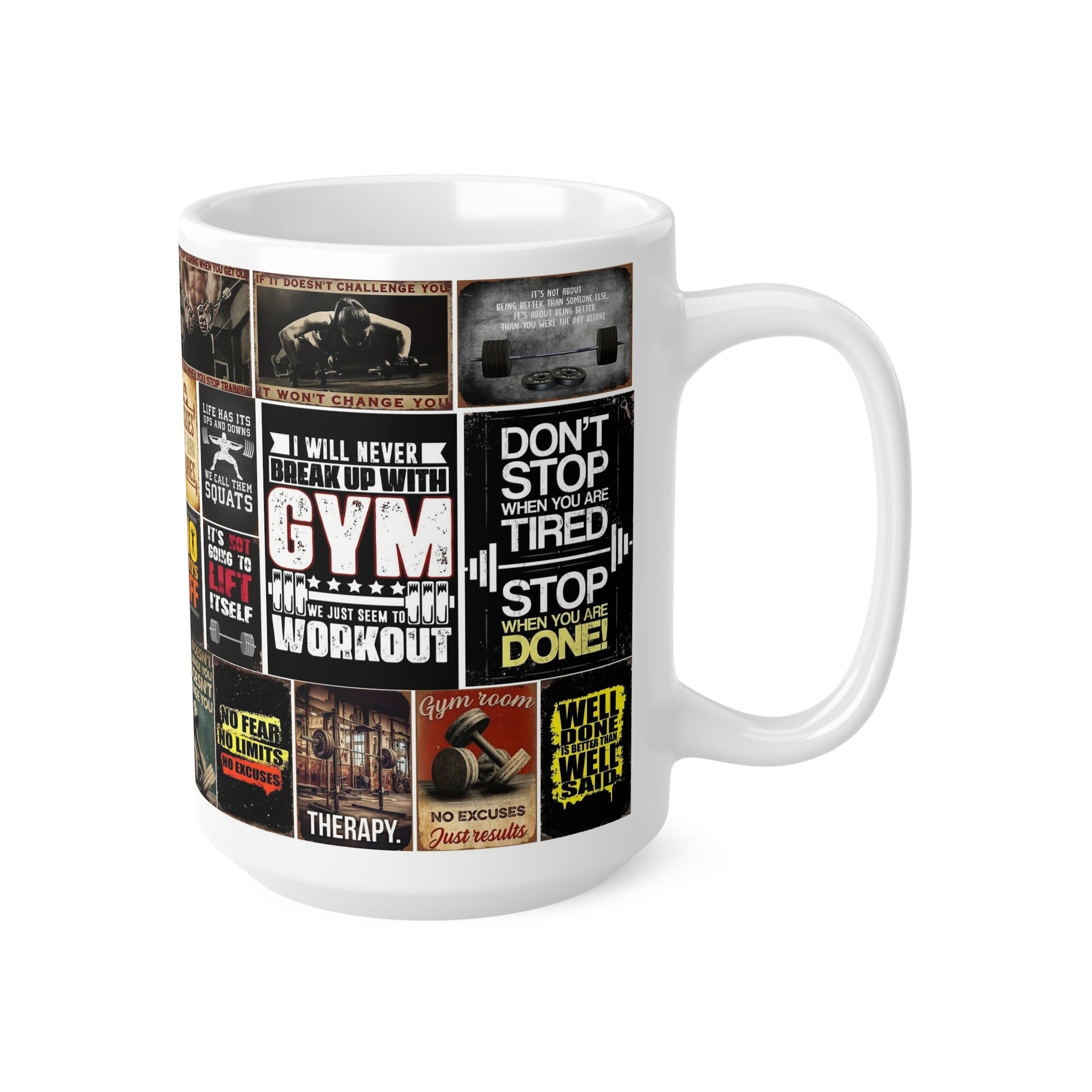 Start your day off with a heavy lift-of caffeine and motivation! This high quality ceramic mug features bold, motivational gym quotes to keep you inspired through every sip. whether you're crushing your morning workout or feeling up the office, this mug is perfect for fitness enthusiaasts and gym lovers