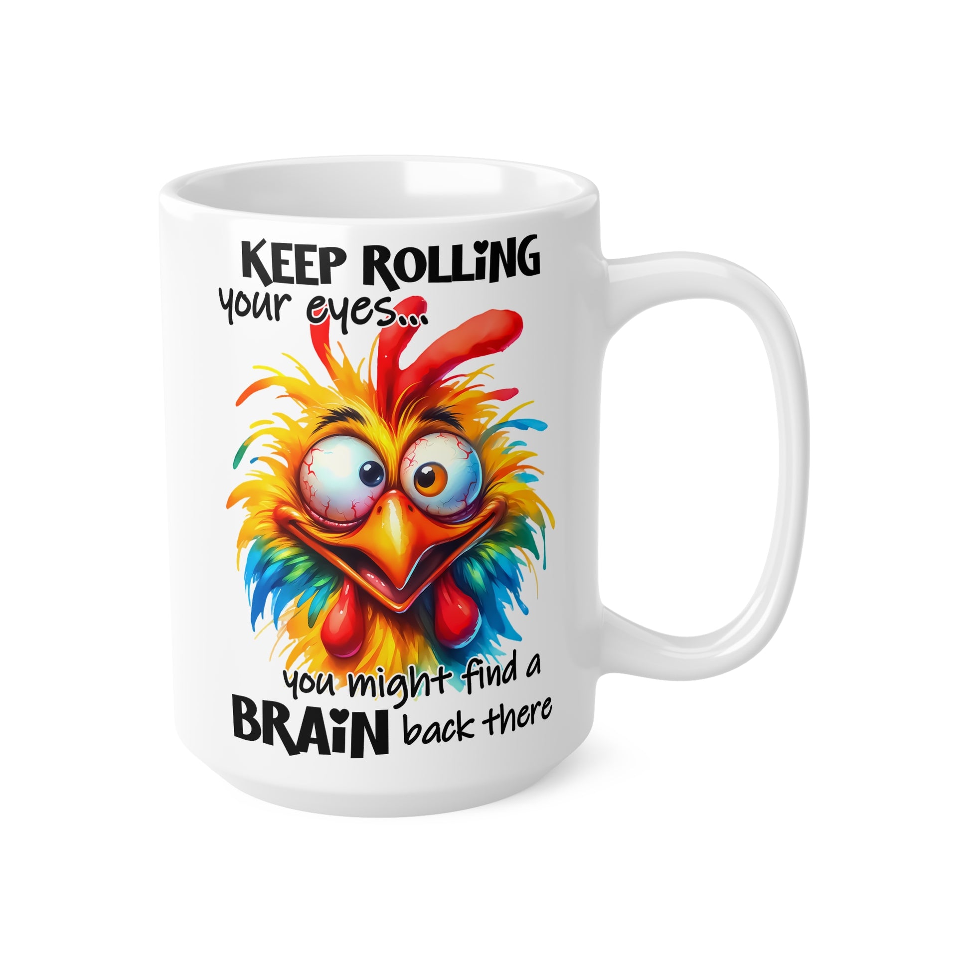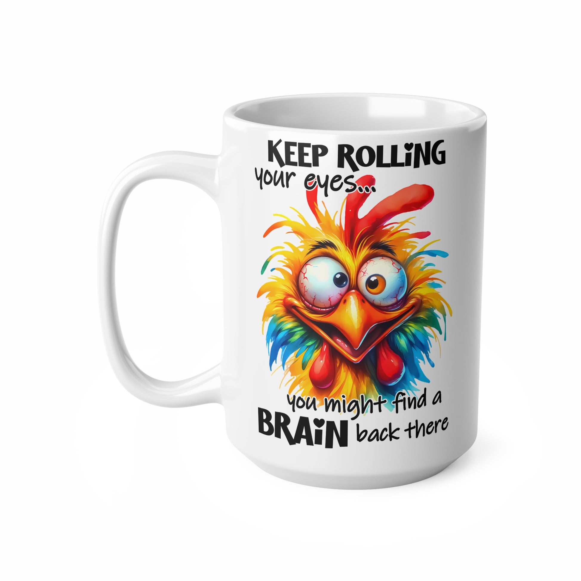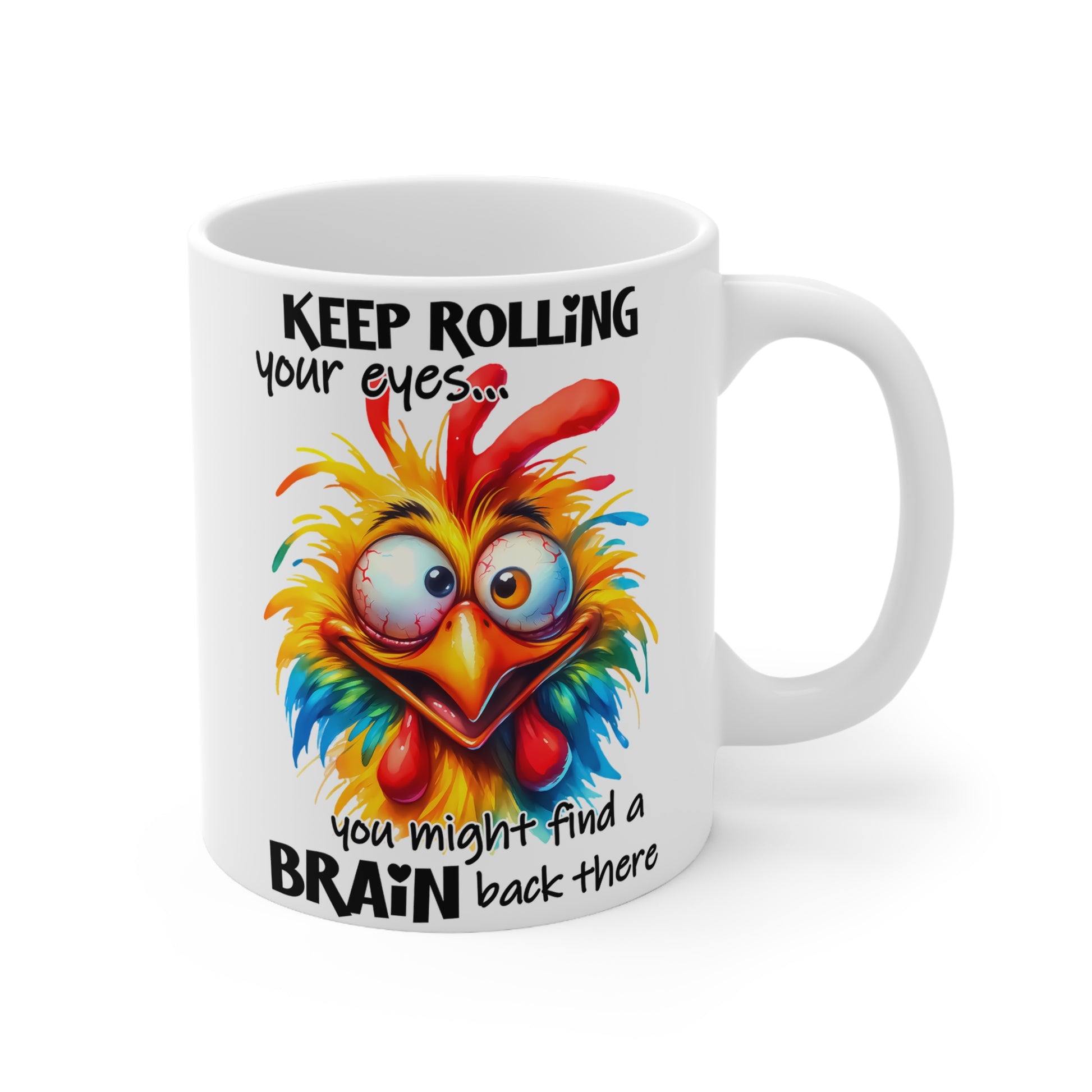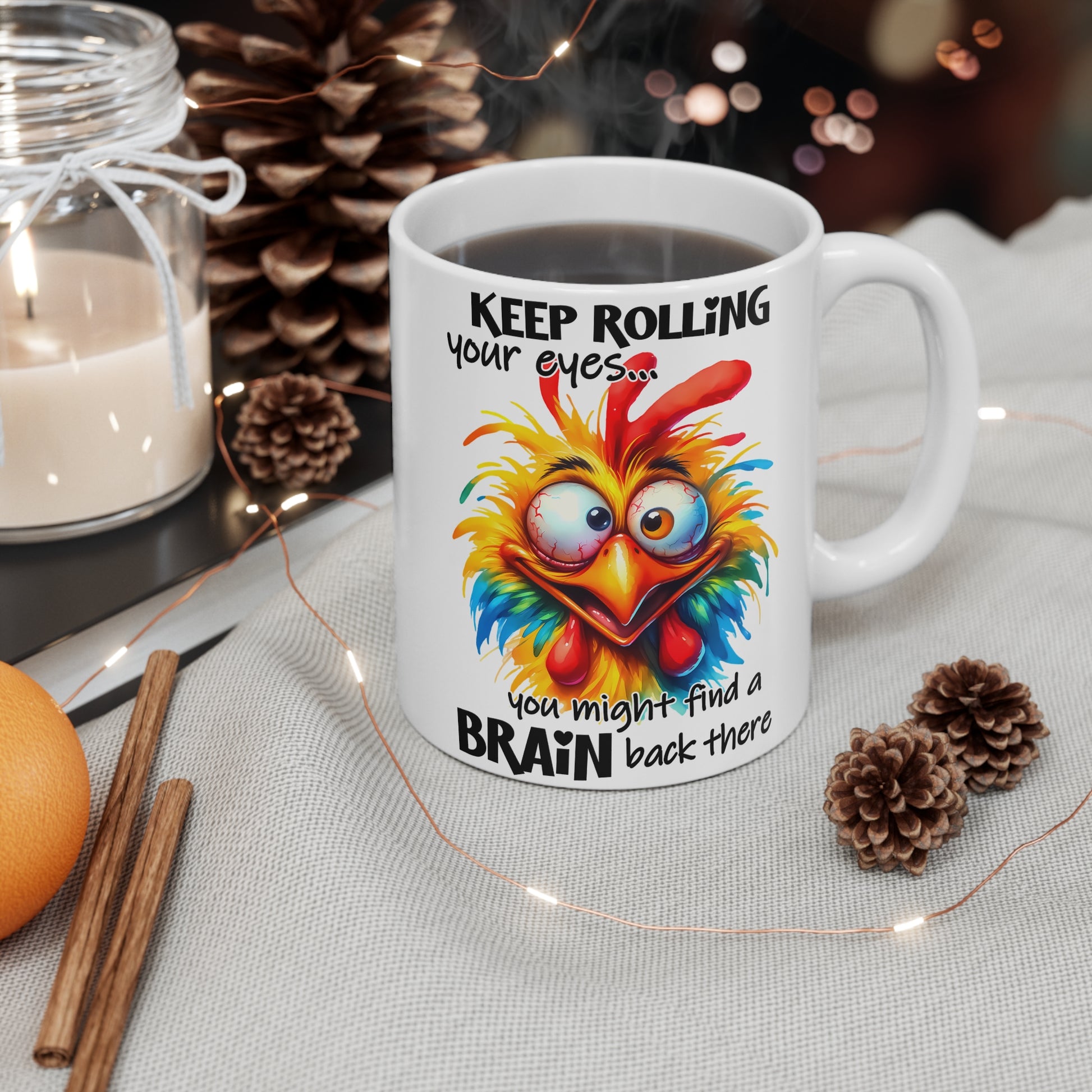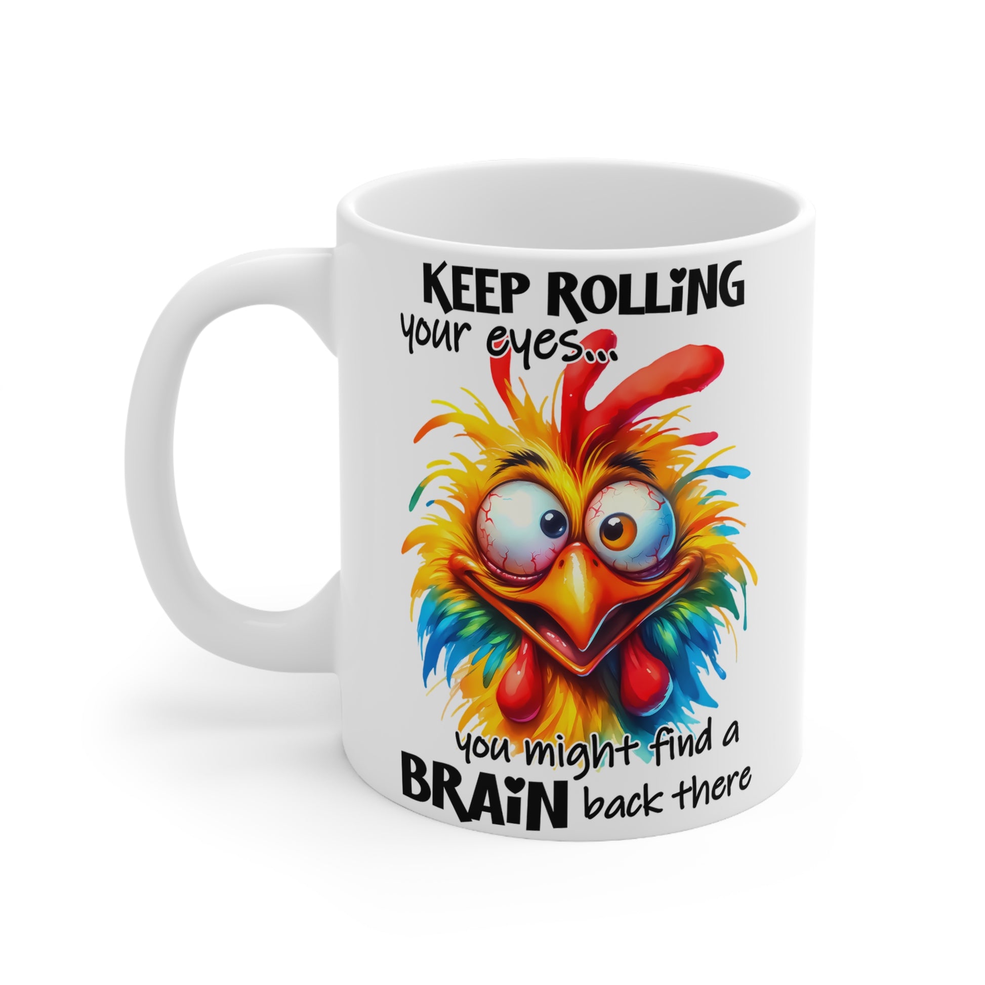 Quirky Ceramic Coffee Mug - "Keep Rolling Your Eyes" Funny Chicken Design